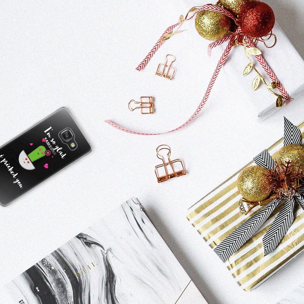 Met de Cactus haal je een vleugje woestijn in je woonkamer. De plant is oer, stoer en verrassend, dankzij opvallende vormen en bloemen. De cactus op dit design hoesje is om verliefd op te worden. Dat straalt deze Telefoonhoesje met Naam, die jouw Samsung Galaxy A3 2016 goed beschermt, echt wel uit. Geen plant zo decoratief en surrealistisch als de cactus. Uit een grijsgroene basis kan een knalroze bol groeien en tussen de stekels kunnen schitterende bloemen verschijnen. Een prachtige manier dus om je telefoon te beschermen, deze schattige TPU case met design Cactus Glad. De hoes is ook nog eens zeer praktisch, mede door het buigzame materiaal en de uitsparingen. Als je telefoon met het TPU hoesje uit je hand valt, stuitert het als het ware meteen weer terug en zal het scherm in tact blijven. De case heeft namelijk opstaande randen aan de voorkant. Alleen de bovenkant van de case wordt bedrukt, de zijkanten zijn doorzichtig.