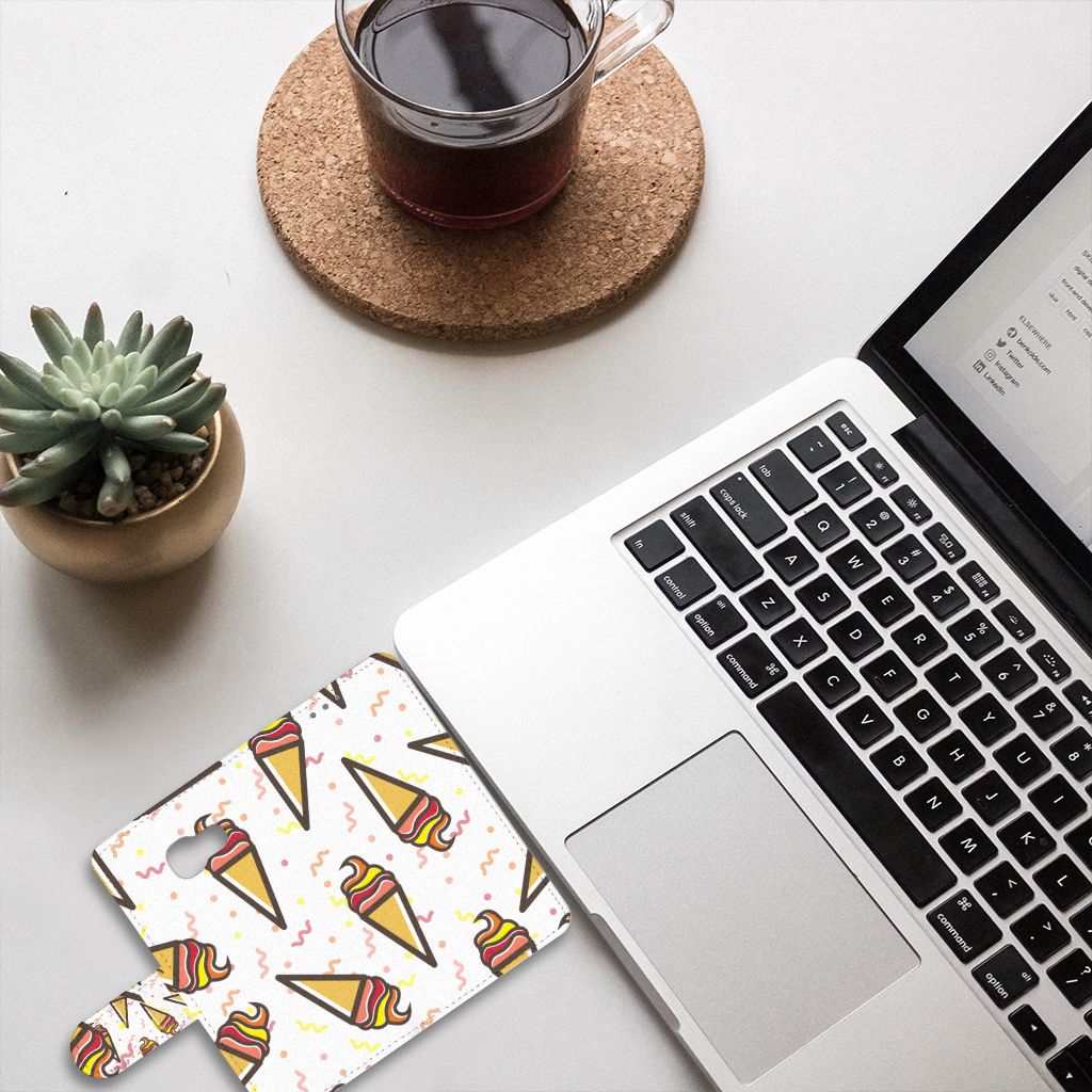 Een vrolijk Samsung Galaxy A3 2017 Book Cover met daarop verschillende ijsjes. Als je daar geen zomers gevoel meer van krijgt, weten wij het ook niet meer. De zomer en ijsjes zijn onlosmakelijk met elkaar verbonden. Tijdens een bezoekje aan het strand mag een lekker ijsje bijvoorbeeld niet ontbreken. Een design hoesje met lekkere Icecream print past daar natuurlijk ook ontzettend goed bij. Jouw telefoon is helemaal beschermd met een boekhoesje met ijsjes design. De aankoop van deze case is een heerlijke investering, die zich gegarandeerd terugbetaalt. Alle zijden van dit hoesje worden bedrukt met ijsjes. De case heeft een lipje aan de buitenzijde voor het afsluiten van de telefoon en de houder aan de binnenzijde is van TPU. Onder alle weersomstandigheden zal deze case met verschillende opbergvakjes perfect functioneren, ook in de zomer met een ijsje in je hand. Dit smaakvolle hoesje is zeer goedkoop te bestellen en wordt zeer snel bezorgd.