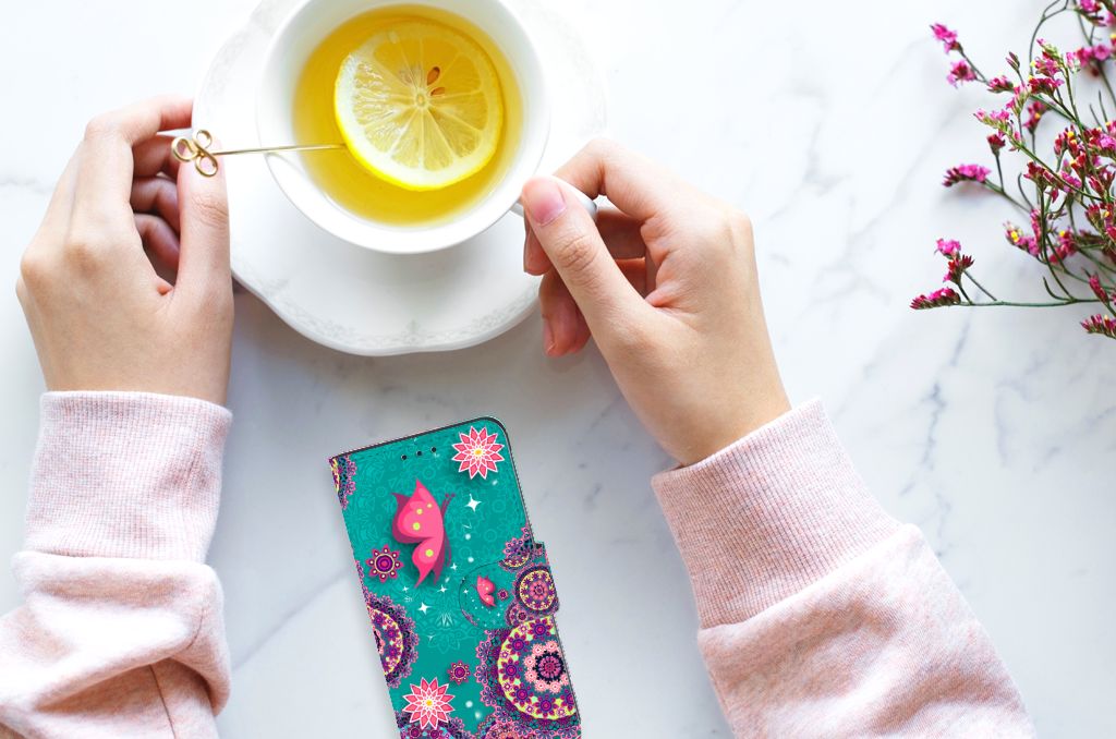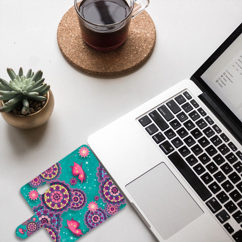 Met deze bookstyle case val jij sowieso op. De vlinders en mandala-achtige cirkels hebben verschillende heldere en opvallende kleuren. Het design op dit Samsung Galaxy A3 2017 Hoesje heeft bovendien iets hippie-achtigs. De heldere kleuren en patronen worden op dit telefoonhoesje met behulp van onze geavanceerde printer gedrukt. Deze printer kan alle zijden van de bookstyle case bedrukken. Zelfs het magnetische lipje wordt bedrukt met het design van cirkels en vlinders. Dit wordt bovendien uitgevoerd met duurzame inkt, zodat het hele hoesje duurzaam is. Deze bookstyle case zal langer meegaan dan de meeste design hoesjes. Dit is goed voor het milieu en voor jouw portemonnee.