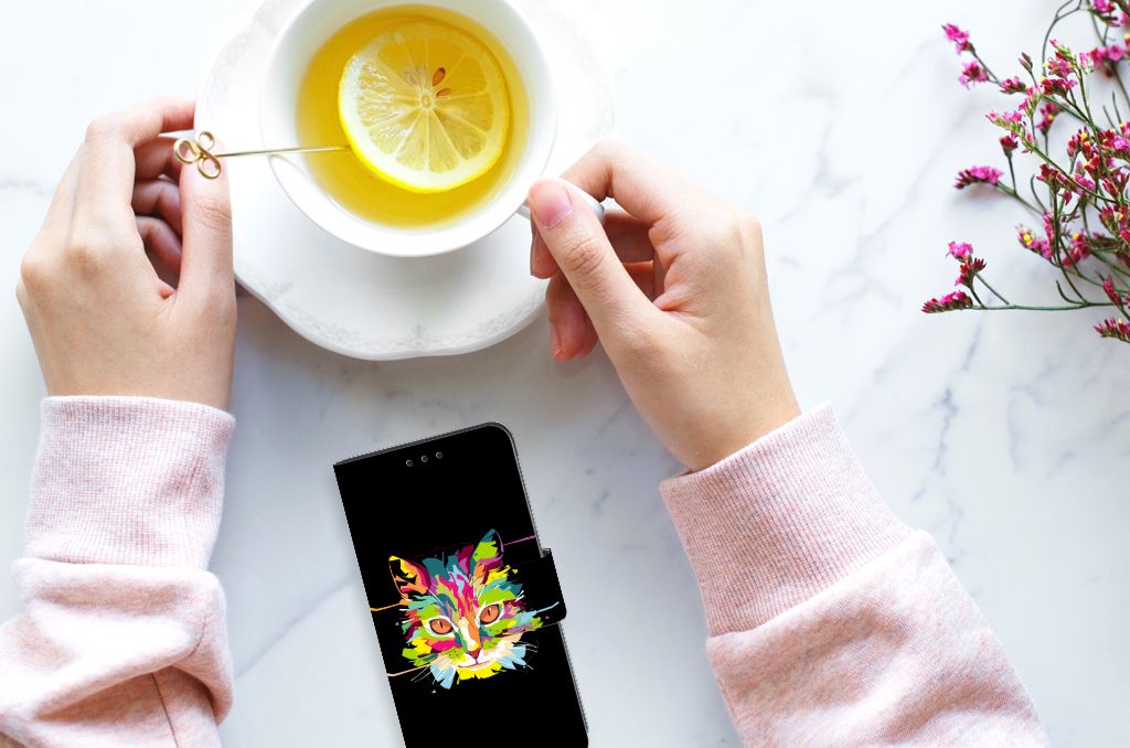 Als jij van katten houdt en op zoek bent naar een uniek hoesje, dan is dit het hoesje wat je wilt hebben. Op de voorkant van dit Leuk Hoesje vind je namelijk een mooie afbeelding van een kat in alle kleuren van de regenboog op een zwarte klassieke achtergrond. Naast dat het een mooi hoesje betreft, is het ook nog eens ontzettend handig. Zo kun je in deze bookcase wel twee á drie pasjes en briefgeld kwijt. Hiermee kun je jouw belangrijkste bezittingen op een plek bewaren in het boekhoesje en kun je jouw portemonnee voortaan thuislaten. Een bookcase heeft daarnaast ook nog het voordeel dat jouw telefoon aan alle zijdes wordt beschermd in dit leuke hoesje, dubbel zo handig dus!