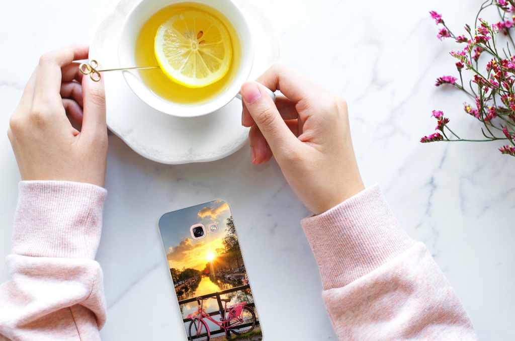 Amsterdam is meer dan ooit een toeristische trekpleister. Een bezoek aan de hoofdstad is niet compleet als je niet aanlegt bij de Amsterdamse Grachten. Ze zijn een symbool van de stad en hebben een enorme culturele en historische waarde. Daarom kunnen ze natuurlijk niet ontbreken in onze collectie design hoesjes. Dit schitterende design hoesje met Amsterdamse grachten tref je enkel en alleen aan bij B2C Telecom. De ondergaande zon en de fleurige en fraaie bloempakketten zorgen voor een prachtig totaalplaatje. Amsterdam is wereldberoemd om haar prachtige grachten uit de zeventiende eeuw. Dit smartphone hoesje is hier een eerbetoon aan. Het design staat op een TPU case. Dit Samsung Galaxy A3 2017 Siliconen Back Cover wordt alleen aan de bovenkant bedrukt en is zeer flexibel. De randen van het hoesje blijven transparant.