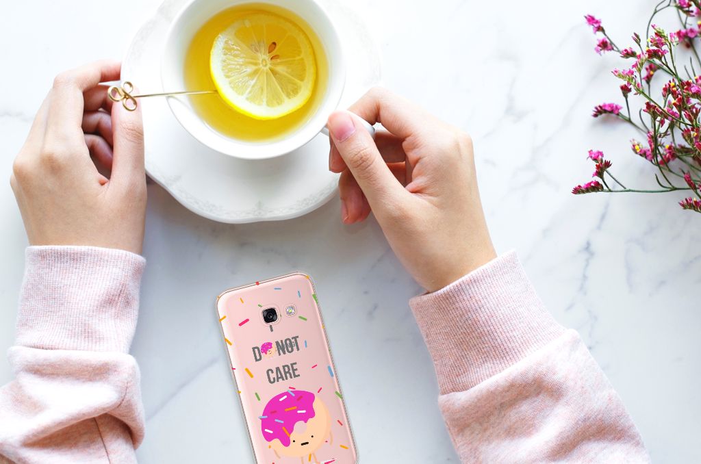 De cartoon met Donut op dit design hoesje geeft jouw smartphone een grappige en vrolijke uitstraling. De Samsung Galaxy A3 2017 Siliconen Case zorgt ervoor dat je je schouders op zult halen als je telefoon een keer op de grond valt. Omdat er geen schade zal optreden kun jij je weg weer heel makkelijk vervolgen. De grappige Donut Care tpu case is nergens anders te krijgen. Het design is namelijk van de hand van onze eigen ontwerper. Daarnaast zal de case jouw smartphone goed beschermen. Een Donut Care tpu case is een zeer flexibel hoesje. Dit komt onder andere door het elastische en onbreekbare materiaal. Verder is de case zeer praktisch. Wat denk je bijvoorbeeld van de opstaande randen aan de voorkant. Verder beschikt de case ook nog eens over alle noodzakelijke uitsparingen. Ook kun je zelf je eigen unieke hoesje ontwerpen, met eigen cartoons, foto’s en teksten. Een Donut Care tpu case wordt alleen aan de bovenkant bedrukt. De randen blijven volledig doorzichtig.