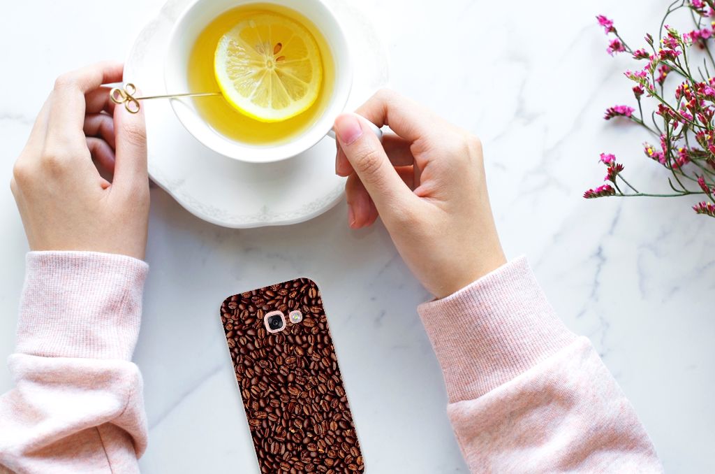 Als je de lekkerste koffie wilt dan kun je beste koffiebonen kopen. Koffie is namelijk het verst wanneer je de bonen zelf maalt. En wie houdt nou niet van de geur van vers gemaalde koffie? Daarom hebben wij de mooiste Koffiebonen op een smartphone hoesje gezet. Ben je barista, dan is dit het perfecte hoesje voor jouw werktelefoon. De koffiebonen staan op een tpu case. Dit is een zeer flexibel hoesje, dat altijd en overal in je broekzak past. Alleen de bovenkant van dit hoesje wordt door ons bedrukt, op zeer duurzame manier. Mensen die houden van een stevige espresso, kiezen voor dit degelijke design hoesje met bonen. Er staan geen bonen op de zijkanten van een Samsung Galaxy A3 2017 Siliconen Case. Wel kun je zelf een eigen tekst toevoegen aan het design. Hoe mooi is dat?
