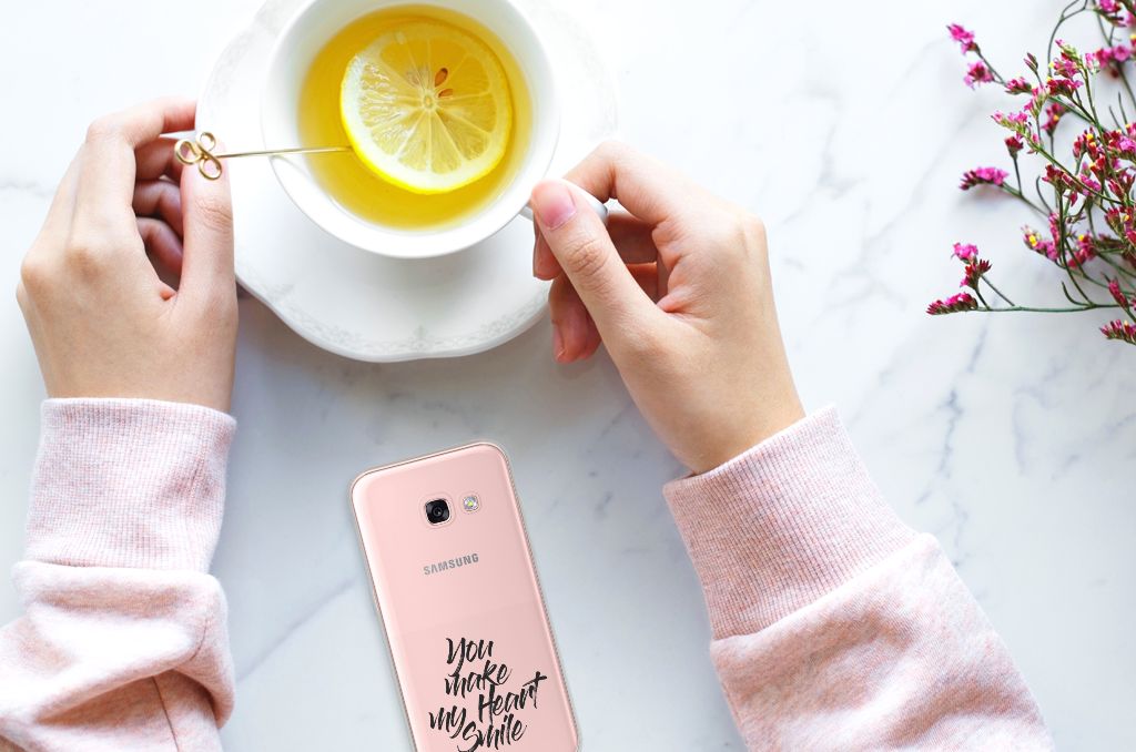 Ben je op zoek naar een uniek telefoonhoesje voor je Samsung Galaxy A3 2017? Dan ben je bij B2C Telecom aan het juiste adres! Speciaal voor jou hebben we dit prachtige Heart Smile design in onze collectie hoesjes opgenomen. Het design wordt bedrukt op een Siliconen hoesje met naam en is gemaakt van flexibel rubber. Het design wordt alleen aan de bovenkant van het hoesje bedrukt en de randen blijven transparant. Aan de zijkanten zijn uitsparingen gemaakt waardoor je met gemak alle knoppen en poorten kunt bedienen. Wij adviseren om dit hoesje in combinatie met een screenprotector te gebruiken voor een langere levensduur van je telefoon. Wil je dit design hoesje nog iets extra's geven? Voeg dan gratis je naam of een quote toe! Is dit design hoesje toch niet helemaal wat je zocht? Ontwerp dan zelf een hoesje in ons ontwerpprogramma.
