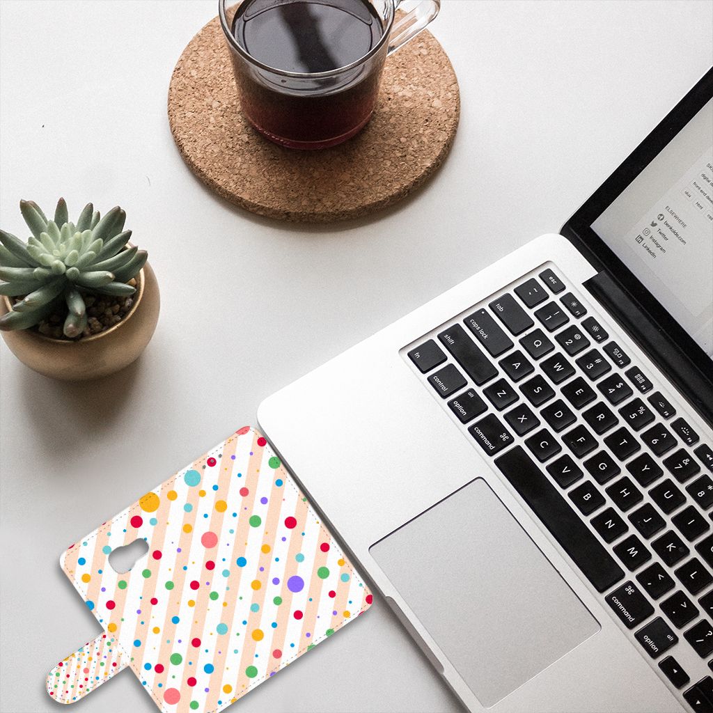 Een Samsung Galaxy A3 2017 Telefoon Hoesje met verschillende kleuren stippen is een schitterende bescherming van jouw smartphone. Het boekhoesje met het design Dots in alle kleuren van de regenboog komt voor jou als geroepen. Maak je geen gebruik van dit zeer mooie hoesje, dan kan het met jouw smartphone een beetje beroerd aflopen. Dit mooie boekhoesje met verschillende kleuren stippen zorgt voor een volledige bescherming van je smartphone en wordt aan alle zijden bedrukt. Sommige stippen staan ook op het magnetische lipje aan de buitenzijde. Verder is de houder aan de binnenzijde van TPU. Jouw telefoon is dus zeer goed opgeborgen en kan geen kant op. Met een hoesje met stippen in verschillende kleuren op alle zijden blijft jouw telefoon volledig in tact. Heb je liever een boekhoesje met stippen in andere opvallende kleuren? Ontwerp dan zelf case met je eigen foto’s en teksten!