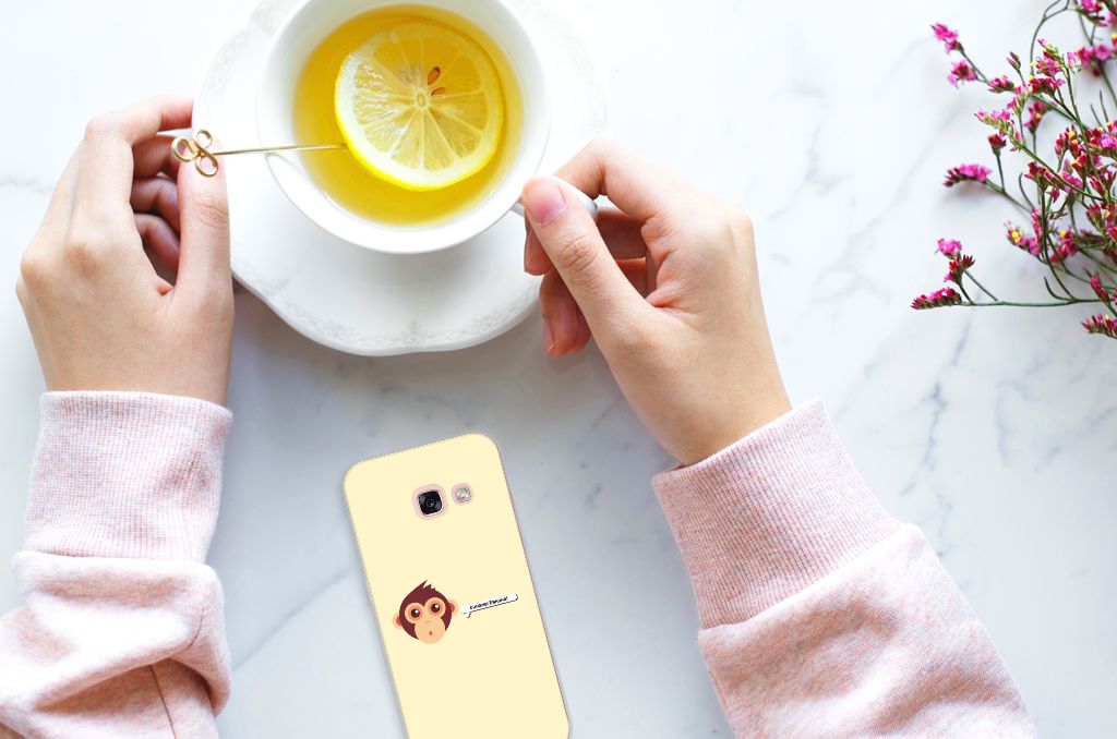 Ben je op zoek naar een uniek telefoonhoesje voor je Samsung Galaxy A3 2017? Dan ben je bij B2C Telecom aan het juiste adres! Speciaal voor jou hebben we dit prachtige Monkey design in onze collectie hoesjes opgenomen. Het design wordt bedrukt op een Telefoonhoesje met Naam en is gemaakt van flexibel rubber. Het design wordt alleen aan de bovenkant van het hoesje bedrukt en de randen blijven transparant. Aan de zijkanten zijn uitsparingen gemaakt waardoor je met gemak alle knoppen en poorten kunt bedienen. Wij adviseren om dit hoesje in combinatie met een screenprotector te gebruiken voor een langere levensduur van je telefoon. Wil je dit design hoesje nog iets extra's geven? Voeg dan gratis je naam of een quote toe! Is dit design hoesje toch niet helemaal wat je zocht? Ontwerp dan zelf een hoesje in ons ontwerpprogramma.