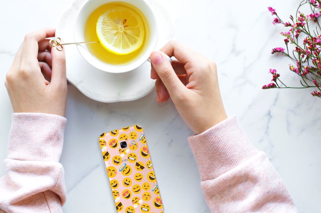 Je gebruikt ze waarschijnlijk dagelijks: emoji’s. Daarom hebben we besloten ze op een design hoesje te zetten. De kleurrijke, vaak gele emoticons maken chatberichten net wat spontaner. Dat hebben we allemaal te danken aan Japan, waar de emoji’s die we zo goed kennen vandaan komen. Ondertussen zijn er meer dan 1800! Deze passen natuurlijk niet allemaal op een Samsung Galaxy A3 2017 TPU bumper, maar we hebben de meeste gebruikte exemplaren erop gezet. Deze tpu case is voorzien van opstaande randen zodat het touchscreen van je telefoon beter is beschermd. Super handig. Het TPU zelf is zeer flexibel en is op maat gemaakt. We gebruiken emoji’s vaak om complete woorden te vervangen. Dit smartphone hoesje zegt dan ook meer dan duizend woorden kunnen. De tpu case wordt alleen aan de bovenzijde bedrukt met emoji’s. De zijkanten van de case worden niet bedrukt en blijven transparant.