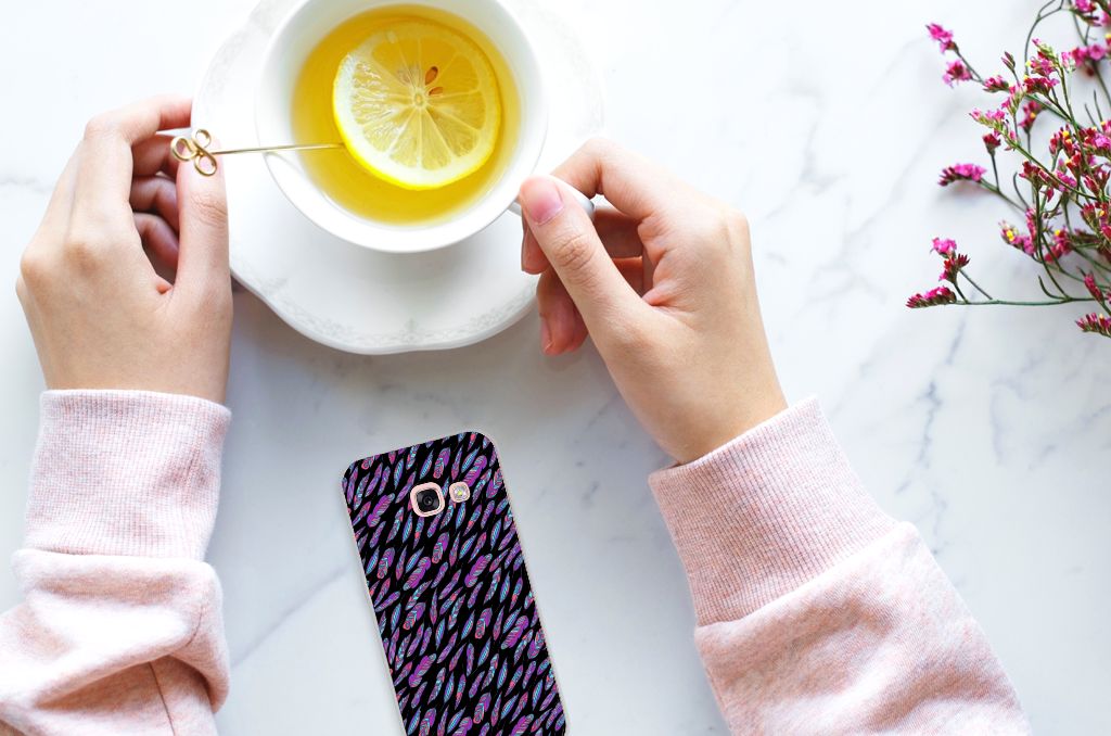 Ben je op zoek naar een uniek telefoonhoesje voor je Samsung Galaxy A3 2017? Dan ben je bij B2C Telecom aan het juiste adres! Speciaal voor jou hebben we dit prachtige Feathers Color design in onze collectie hoesjes opgenomen. Het design wordt bedrukt op een TPU bumper en is gemaakt van flexibel rubber. Het design wordt alleen aan de bovenkant van het hoesje bedrukt en de randen blijven transparant. Aan de zijkanten zijn uitsparingen gemaakt waardoor je met gemak alle knoppen en poorten kunt bedienen. Wij adviseren om dit hoesje in combinatie met een screenprotector te gebruiken voor een langere levensduur van je telefoon. Wil je dit design hoesje nog iets extra's geven? Voeg dan gratis je naam of een quote toe! Is dit design hoesje toch niet helemaal wat je zocht? Ontwerp dan zelf een hoesje in ons ontwerpprogramma.