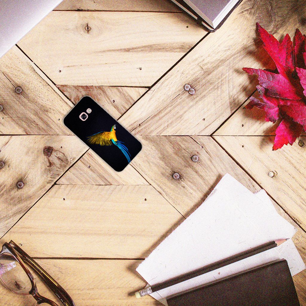 Dit design hoesje met Papegaai tegen een zwarte achtergrond is een zeer flexibele bescherming voor jouw smartphone. Dit komt vooral omdat deze print op een tpu case staat. Dit is een zeer buigzaam hoesje, dat de telefoon vooral aan de achterkant en zijkanten beschermt. De bovenkant van de Samsung Galaxy A3 2017 TPU Hoesje wordt bedrukt met deze schitterende print. De zijkanten blijven doorzichtig. Papegaaien zijn erg sociale vogels die voldoende aandacht en gezelschap nodig hebben. Als je er voor kiest om een papegaai aan te schaffen, is het een goed idee om een koppeltje te nemen. Koop je meerdere tpu cases met een papegaai, dan ga je automatisch minder betalen per hoesje. Wij hanteren een systeem van bundelkorting. Dus koop dit hoesje met opstaande randen voor een spotprijs.