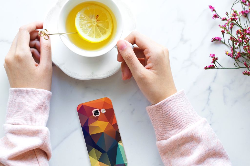 Veelkleurige driehoeken die samen eindeloze asymmetrische patronen lijken te vormen. Het is het abstracte schouwspel dat op dit fraaie hoesje voor je Samsung Galaxy A3 2017 direct de aandacht trekt noemen we voor het gemak trekt noemen we voor het gemak Polygon Color. De een ziet er een berglandschap in, de ander piramides. Wat zie jij erin? Zeker is in elk geval dat de aanblik van dit fascinerende ontwerp je niet snel gaat vervelen. Het kleurige spel van lijnen en vlakken blijft eindeloos boeien en geeft jouw TPU Hoesje een hippe en kunstzinnige uitstraling. De kracht die het lijnenspel uitstraalt, komt ook terug in het hoesje zelf. Dit hoesje wordt alleen aan de bovenkant bedrukt en is zeer flexibel. De randen van het hoesje blijven transparant. Wat wil je nog meer?