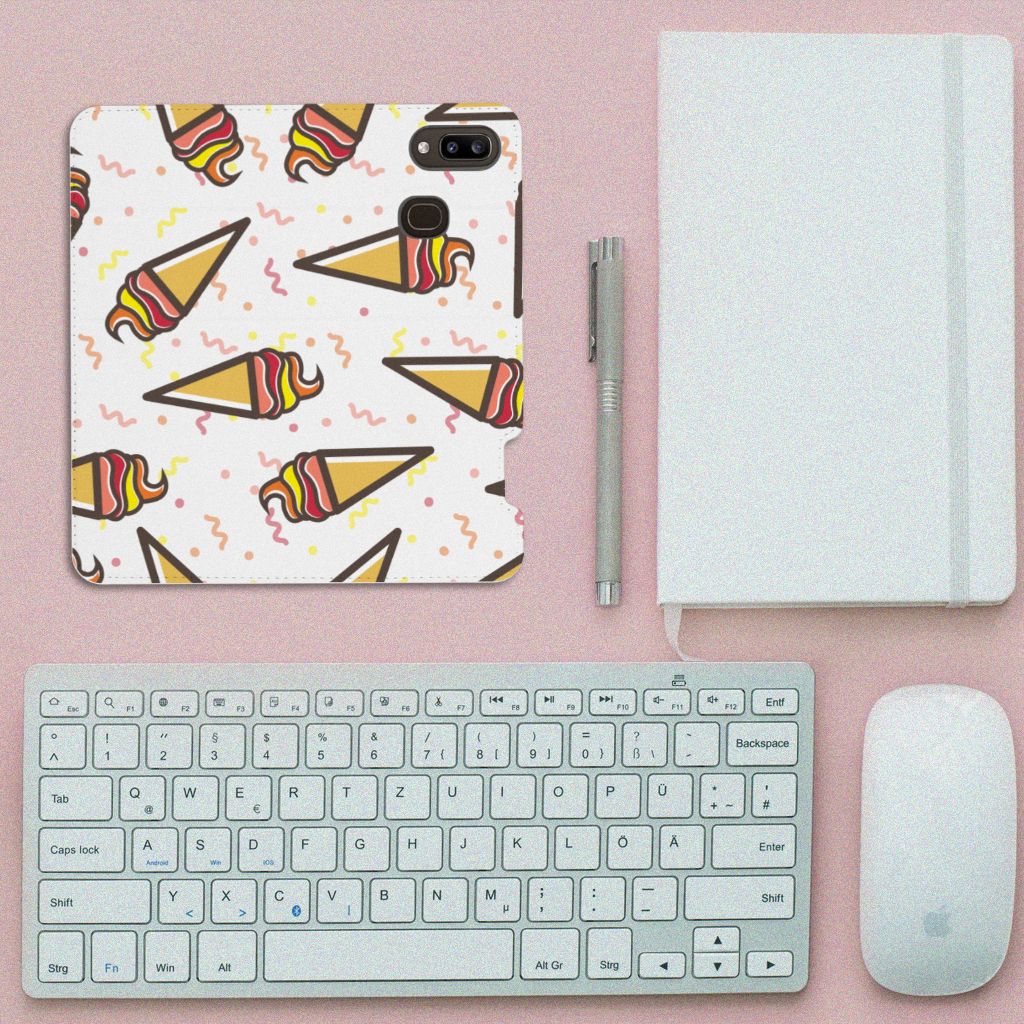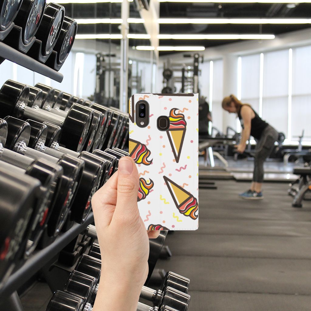 Een vrolijke Samsung Galaxy A30 Flip Style Cover met daarop verschillende ijsjes. Als je daar geen zomers gevoel meer van krijgt, weten wij het ook niet meer. De zomer en ijsjes zijn onlosmakelijk met elkaar verbonden. Tijdens een bezoekje aan het strand mag een lekker ijsje bijvoorbeeld niet ontbreken. Een design hoesje met lekkere Icecream print past daar natuurlijk ook ontzettend goed bij. Jouw telefoon is helemaal beschermd met een stand case met ijsjes design. De aankoop van deze case is een heerlijke investering, die zich gegarandeerd terugbetaalt. Alle zijden van dit hoesje worden bedrukt met ijsjes. De case heeft een speciale standaard en de houder aan de binnenzijde is van TPU. Onder alle weersomstandigheden zal deze case met opbergvakje perfect functioneren, ook in de zomer met een ijsje in je hand. Dit smaakvolle hoesje is zeer goedkoop te bestellen en wordt zeer snel bezorgd.