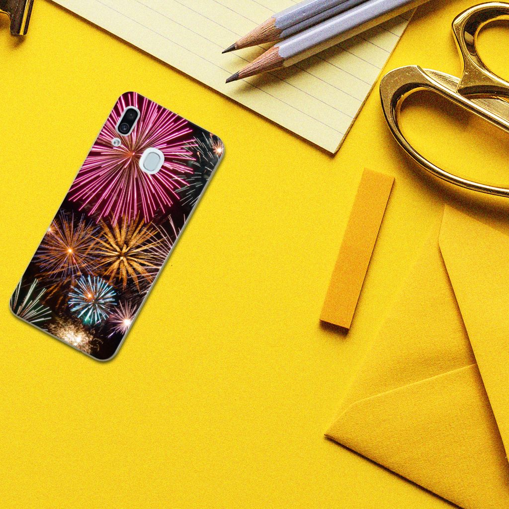 Deze Samsung Galaxy A30 Silicone Back Cover levert gegarandeerd Vuurwerk op. Kijk alleen al eens naar de print van siervuurwerk, in zeer veel verschillende kleuren. Als je dit hoesje ziet kun je bijna niet geloven dat sommige gemeenten in Nederland overwegen om vuurwerk te verbieden. Er gebeuren weliswaar ongelukken mee, maar zoiets schitterends als op deze tpu case met vuurwerk wil je toch gewoon niet missen. Bovendien beschermt dit hoesje jouw smartphone ook nog eens erg goed. De bovenkant van dit hoesje wordt bedrukt, de zijkanten blijven doorzichtig. De case is gemaakt van schokabsorberend materiaal en past altijd in je broekzak. Onder alle omstandigheden zal deze TPU case perfect functioneren, ook als je met nieuwjaar vuurwerk aan het afsteken bent. Zorg dan overigens wel dat je zelf ook voldoende afgeschermd bent van het vuurwerk.