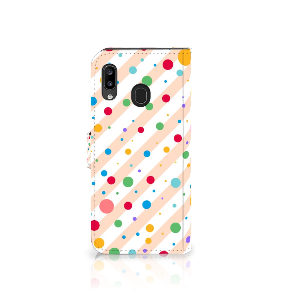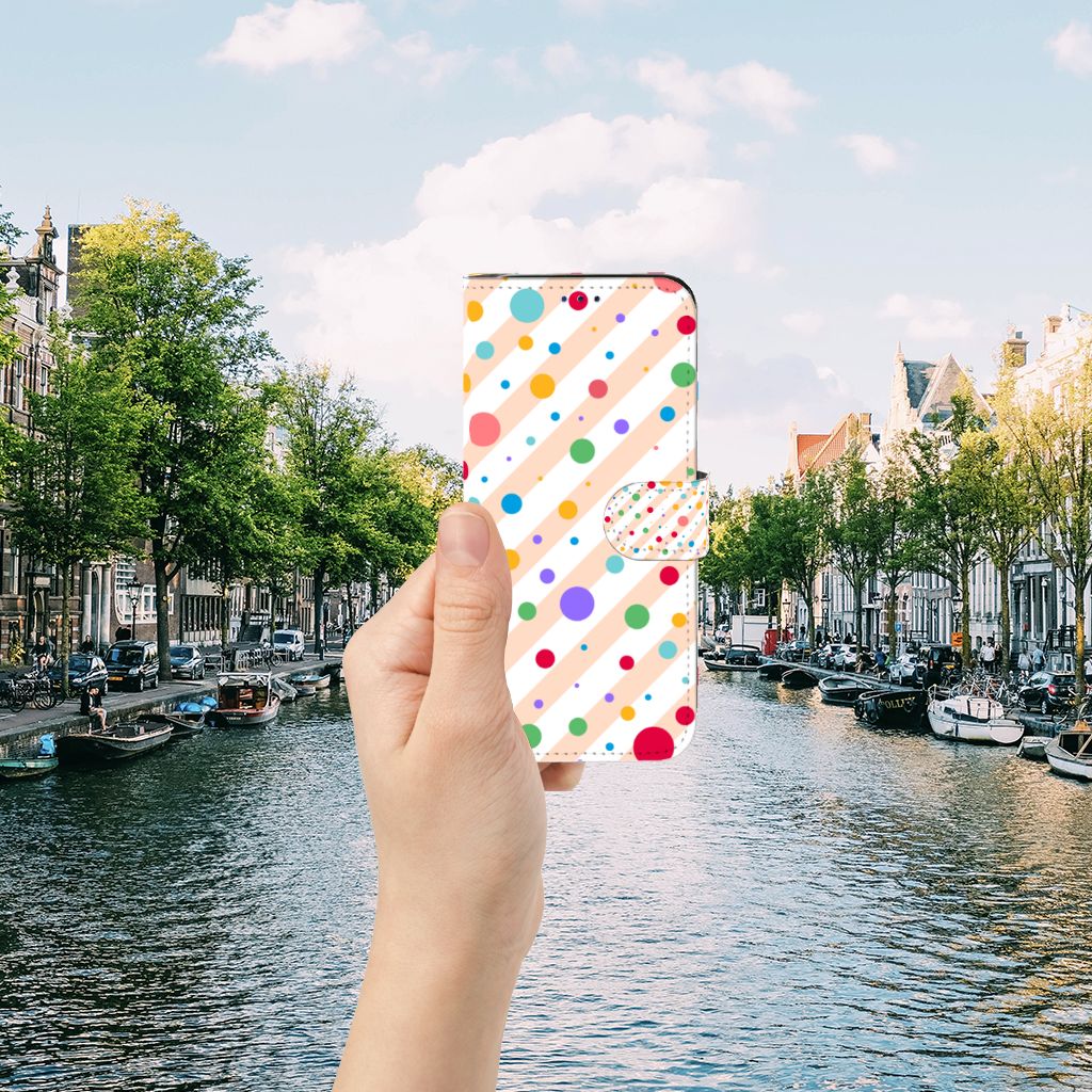 Een Samsung Galaxy A30 Telefoon Hoesje met verschillende kleuren stippen is een schitterende bescherming van jouw smartphone. Het boekhoesje met het design Dots in alle kleuren van de regenboog komt voor jou als geroepen. Maak je geen gebruik van dit zeer mooie hoesje, dan kan het met jouw smartphone een beetje beroerd aflopen. Dit mooie boekhoesje met verschillende kleuren stippen zorgt voor een volledige bescherming van je smartphone en wordt aan alle zijden bedrukt. Sommige stippen staan ook op het magnetische lipje aan de buitenzijde. Verder is de houder aan de binnenzijde van TPU. Jouw telefoon is dus zeer goed opgeborgen en kan geen kant op. Met een hoesje met stippen in verschillende kleuren op alle zijden blijft jouw telefoon volledig in tact. Heb je liever een boekhoesje met stippen in andere opvallende kleuren? Ontwerp dan zelf case met je eigen foto’s en teksten!