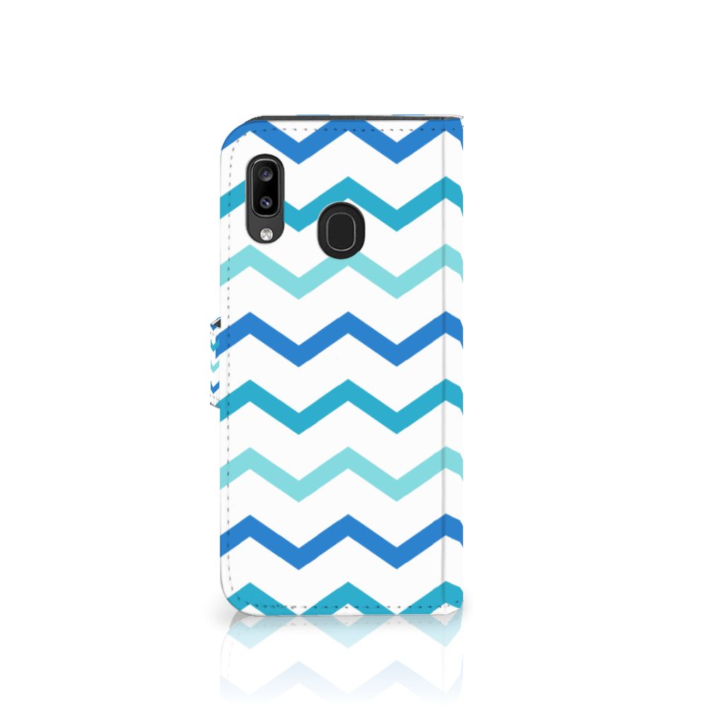 Dit zigzag blauwe design hoesje is speciaal ontworpen voor jou. We hebben bewust verschillende stijlen blauw gebruikt, zodat er voldoende sprake is van variatie. Dit blauwwitte Telefoon Hoesje ziet er super strak uit. Dat kan ook niet anders, als je weet dat onze zeer talentvolle designer er hoogstpersoonlijk voor verantwoordelijk is. Hij schudt wekelijks nieuwe designs uit zijn mouw en dit zigzag blauwe hoesje is een van zijn fraaiste creaties. Een heel dik design hoesje, al zeggen we het zelf. Valt dit blauwwitte design hoesje goed bij jou? Bestel het dan vandaag nog en je hebt het morgen in huis. Het design staat op een boekhoesje. Dit smartphonehoesje beschermt jouw Samsung Galaxy A30 aan alle zijden en beschikt over verschillende opbergvakjes voor pasjes en briefgeld. De case sluit perfect af met het lipje aan de buitenkant. De houder aan de binnenzijde is van TPU. Alle zijden van het hoesje worden bedrukt, inclusief het lipje.