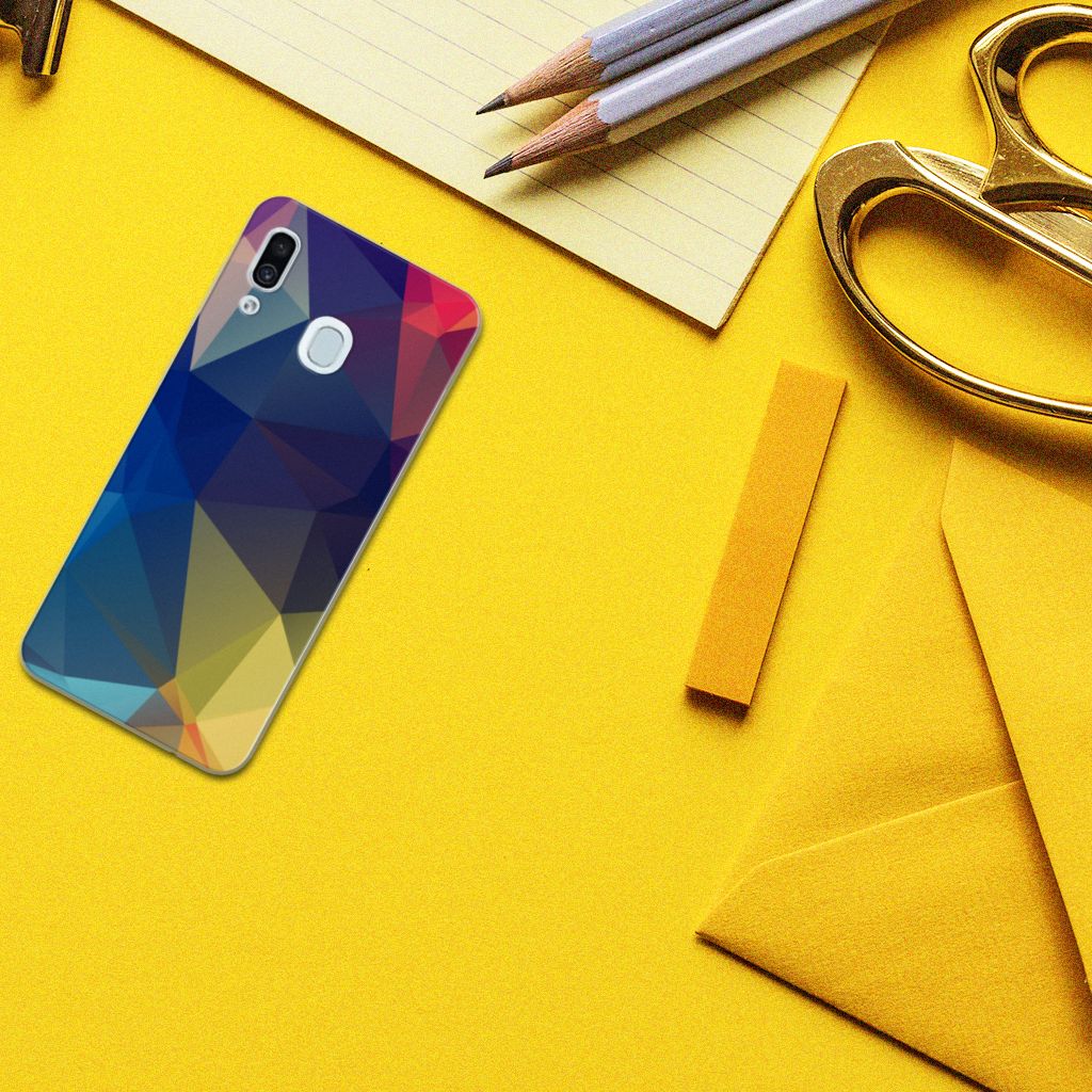 Ben je een liefhebber van abstracte hoesjes? Dan zit je met dit fraaie telefoonhoesje met Polygon Dark design voor je Samsung Galaxy A30 zeker goed. Het ontwerp springt in het oog door de naadloos op elkaar aansluitende veelhoeken – beter bekend als polygonen. Door hun asymmetrische karakter krijgt het TPU Hoesje een bijzondere uitstraling en wordt je blik ernaartoe gezogen als door het beste abstracte schilderij. Het trendy uiterlijk en de warme kleuren zorgen ervoor dat het hoesje aansluit op vrijwel elke smaak en situatie. Het design staat op een TPU case. Dit hoesje wordt alleen aan de bovenkant bedrukt en is zeer flexibel. De randen van het hoesje blijven transparant.