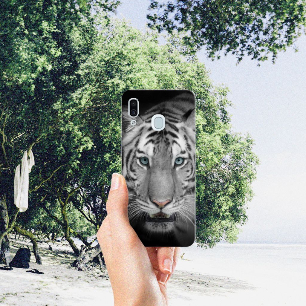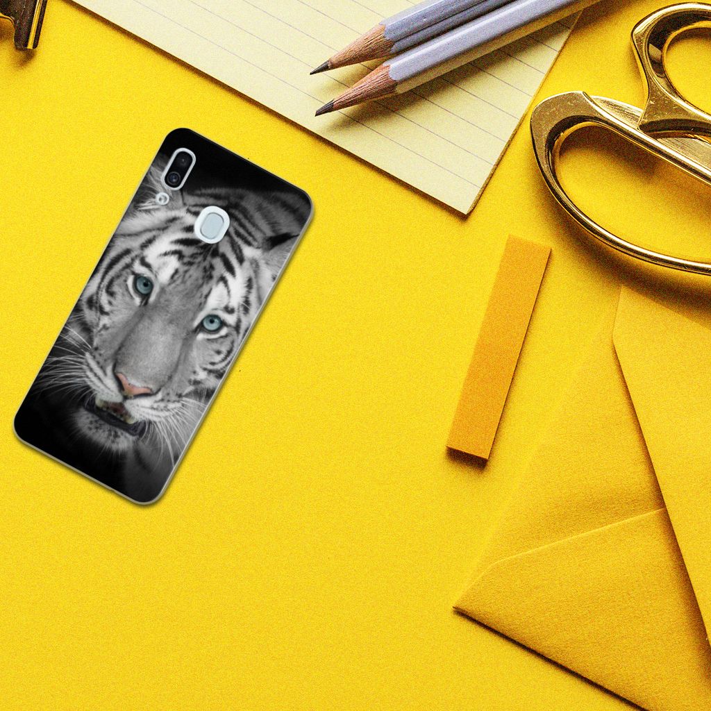 Omdat de Witte Tijger zo bijzonder is, zijn wij bereid deze voor zeer lage kosten op een tpu case te zetten. Dit kunnen we zo goedkoop doen omdat we het drukwerk in eigen beheer doen. Witte tijgers leefden lange tijd in de bossen van India, Bangladesh, Nepal, Bhutan en China en kunnen wel 257 kilo wegen. Dit zwaargewicht kunnen we bedrukken op verschillende soorten hoesjes, zoals deze tpu cases. Deze Samsung Galaxy A30 TPU Hoesje kan exclusief in het bezit van jou komen. Zeker als je er zelf nog unieke teksten en/of beelden aan toevoegt. Het tpu hoesje is zeer flexibel en wordt alleen aan de bovenzijde bedrukt. De randen van dit flexibele hoesje blijven doorzichtig. Tegenwoordig zijn witte tijgers alleen in gevangenschap te bewonderen. Jij zorgt voor een goede bescherming van je smartphone met dit design hoesje met witte tijger.