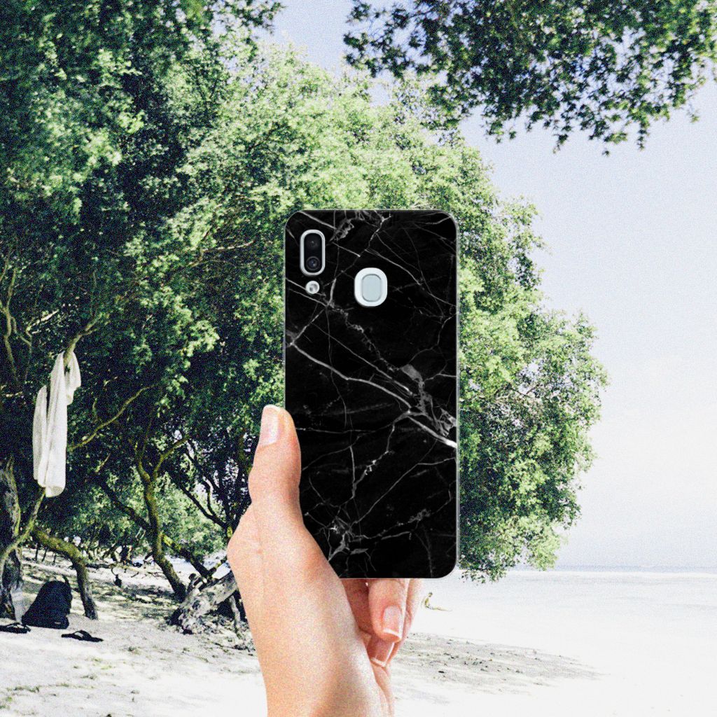 Dit design hoesje met Marmer Zwart is voor de artistieke personen onder ons. De Grieken en Romeinen wisten het materiaal al te waarderen door het in de bouw toe te passen. Naast het witte marmer met haar zacht grijze geaderde belijning zijn de diverse soorten in een gevarieerd kleurenpallet te krijgen. We hebben mooie kleuren op design hoesjes gezet, zoals in dit geval zwart marmer. Dit is een Samsung Galaxy A30 TPU Siliconen Hoesje met marmer in bruine kleur. Het marmer wordt bedrukt op de voorkant van een tpu case, die beschikt over opstaande randen aan de voorkant en heel goed combineert met een screenprotector van glas of van folie. De rijkdom aan kleuren en varianties in afwerking geeft ontwerpers de vrijheid om met marmer hele mooie architectonische projecten te realiseren. Wij hebben onze designer tevens veel vrijheid gegeven. Het resultaat zie je terug in deze tpu case met zwart marmer, die jouw smartphone goed beschermt. De zijkanten van de case worden niet bedrukt met het zwarte marmer.