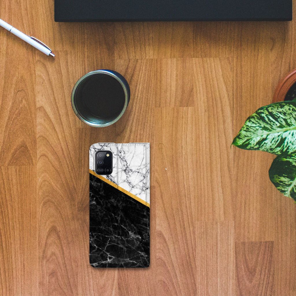 Dit design hoesje met zwartwit marmer is zeer geschikt voor jouw kostbare telefoon. Vanwege zijn prachtige lichtval en vastheid is marmer zeer gewild als bouwmateriaal. Op jouw smartphone kun je lange tijd bouwen als jij kiest voor deze hele mooie Samsung Galaxy A31 Standcase. Naast het zwart-witte marmer zijn er de diverse marmersoorten in een ruim kleurenpallet te krijgen. Deze stand case met marmer in zwart-wit wordt bedrukt op alle zijden. De case beschikt over een vakje voor een pasje en toebehoren en een magnetische sluiting aan de binnenzijde. Verder heeft de case in zwart wit marmer een houder van TPU. Wij hebben onze designer veel vrijheid gegeven met het ontwerpen dit mooie hoesje. Het resultaat zie je terug in deze stand case met zwartwit marmer, dat de ideale bescherming is voor jouw smartphone.