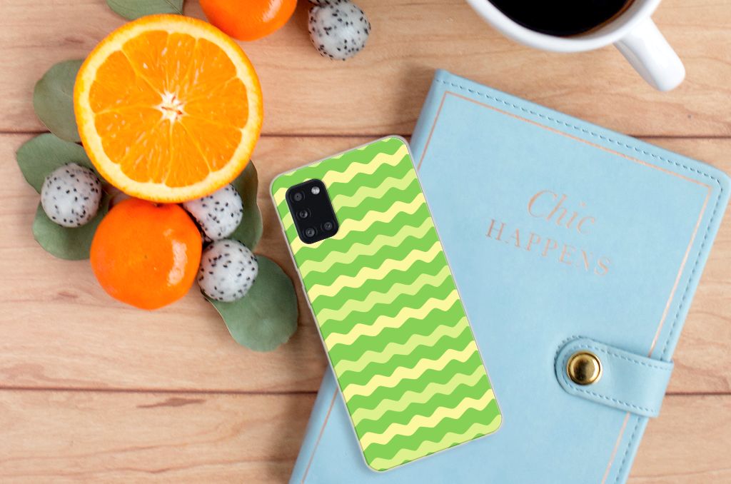 Dit groene design hoesje met groene golven is speciaal ontworpen voor jouw telefoon. We hebben een vleugje geel toegevoegd, zodat er sprake is van variatie. Dit Waves Green hoesje ziet er flitsend uit. Dat kan ook niet anders, als je weet dat we veel energie steken in het bedenken van originele designs. Een heel strak Samsung Galaxy A31 TPU bumper, met zeer veel opties. Past dit groene design hoesje met golven goed bij jou? Bestel het dan vandaag nog, tegen zeer lage kosten. Het design staat op een TPU case. Dit hoesje wordt alleen aan de bovenkant bedrukt en is zeer flexibel. De randen van het hoesje met groene golven blijven transparant en worden niet bedrukt. Met dit hoesje past jouw telefoon altijd in je broekzak.