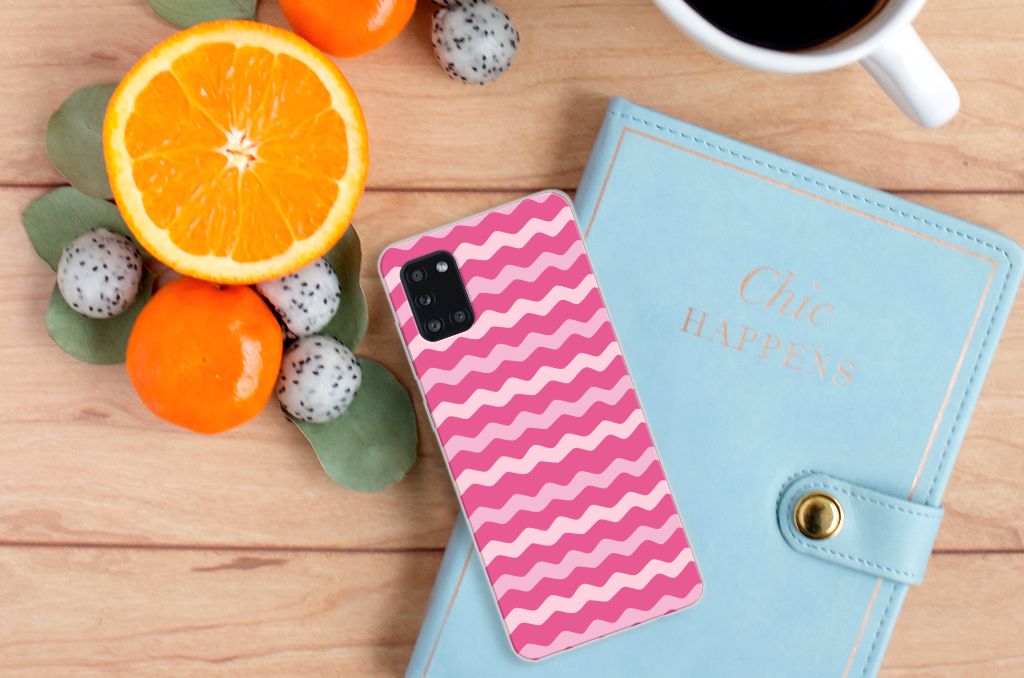 Dit design hoesje met roze golven is speciaal op maat gemaakt voor jouw telefoon. We hebben verschillende kleurstellingen gebruikt in het design, zodat de case er spannend en leuk uitziet. Dit roze hoesje met verschillende soorten golven ziet er opwindend uit. Het Samsung Galaxy A31 TPU bumper wordt in ons eigen magazijn bedrukt, vandaar dat we de kosten zeer laag kunnen houden. Wij kunnen het duurzame hoesje met Waves Pink zeer snel leveren. Heb jij altijd al een design hoesje met verschillende soorten roze willen hebben? Deze TPU case met roze golven wordt alleen aan de bovenkant bedrukt en is zeer flexibel. De randen van het hoesje met licht roze golven blijven transparant en worden niet bedrukt. Met dit roze hoesje past jouw telefoon altijd in je broekzak.