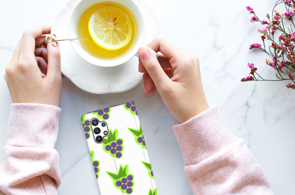 Druiven worden ook wel de ‘koningin van het fruit’ genoemd. Dus komen ze uiteraard aan bod in ons assortiment design hoesjes. Een Samsung Galaxy A32 4G | A32 5G Enterprise Editie Flip Style Cover met een tros blauwe druiven maakt je ontzettend trots. Juist omdat het zo goed past bij jouw smartphone. Doordat er veel verschillende soorten druiven bestaan - groene, rode en zelfs zwarte - is het aanbod ontzettend groot. Ons aanbod stand cases met blauwe druiven is ook zeer groot, je zult niet snel achter het net vissen. Het stand hoesje met druiven design heeft een vakje aan de binnenzijde, waarin je jouw rijbewijs of je creditcard kunt stoppen. Dit leuke stand hoesje met blauwe druiven wordt aan de binnenzijde afgesloten met een magneet. Verder klemt de tpu houder aan de binnenzijde perfect om jouw telefoon. Ben je op zoek naar hoesjes met ander fruit erop? Je komt aan je trekken als je ons assortiment design hoesjes bekijkt.