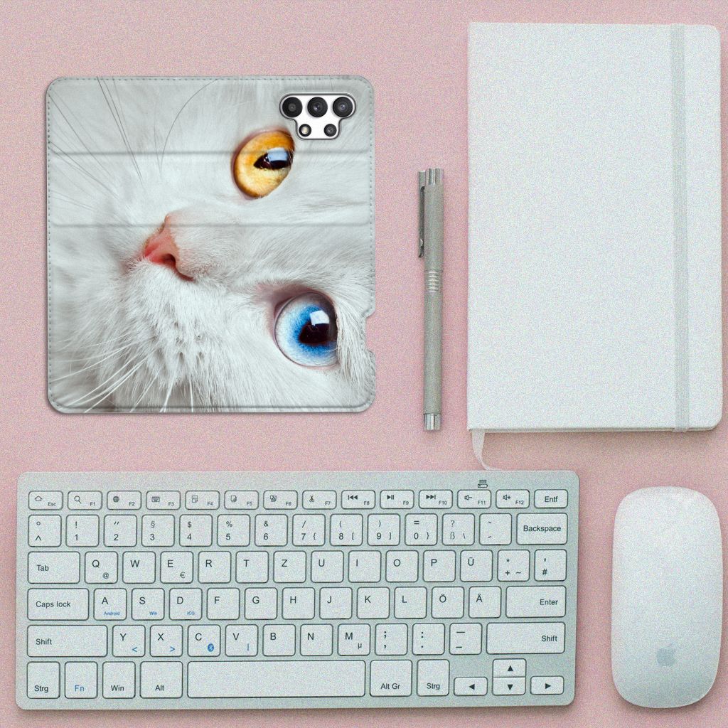 Witte katten zijn natuurlijk extra speciaal, vandaar we een exemplaar op een design hoesje hebben gezet. Een witte kat schijnt trouwens ook slechter te kunnen horen dan katten met een andere kleur. Deze witte kat staat op een zeer prominente wijze op een stand case. Deze stand case met witte kat ziet er geweldig uit en is voorzien van verschillende uitsparingen en een speciale standaard. Een Samsung Galaxy A32 4G | A32 5G Enterprise Editie Hoesje maken met witte kat beschermt jouw smartphone perfect. Alle zijden van de case zijn bedrukt. Jouw smartphone wordt erg duurzaam met dit design hoesje. Het TPU aan de binnenzijde is zeer flexibel en het pu-leer oogt chique. Verder heeft de case een houder voor bijvoorbeeld je rijbewijs aan de binnenkant.