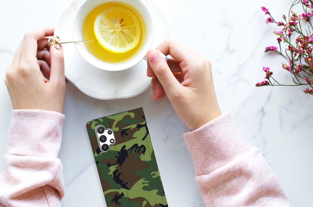 Voel je jezelf verbonden met het leger, dan zal deze Samsung Galaxy A32 4G | A32 5G Enterprise Editie Hoesje met Magneet je zeker bevallen. Het design hoesje beschikt namelijk over donkere camouflage kleuren. Deze worden vaak gebruikt door mensen die zich graag willen mengen in hun omgeving. Dit Army Dark hoesje is er dus voornamelijk in kleuren die in de natuur voorkomen, zodat je één wordt met je achtergrond. Beschermt de krijgsmacht volk en vaderland, dit hoesje in donkere camouflage kleuren zal jouw telefoon onder alle omstandigheden schadevrij houden. Met een hoesje in dit soort kleuren zal je niet zo snel opvallen. Wel is het echter een hele stoere case. Het design staat op een stand case. Deze case beschermt jouw telefoon aan alle kanten en beschikt over een 1 opbergvakje en een speciale standaard. Het hoesje wordt afgesloten met een magneet aan de binnenzijde. De houder aan de binnenzijde is van TPU. Alle zijden van de case worden bedrukt met donkere camouflage kleuren.