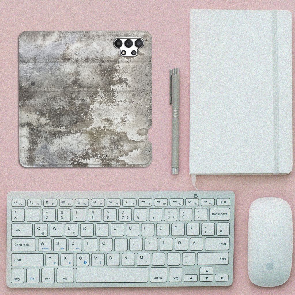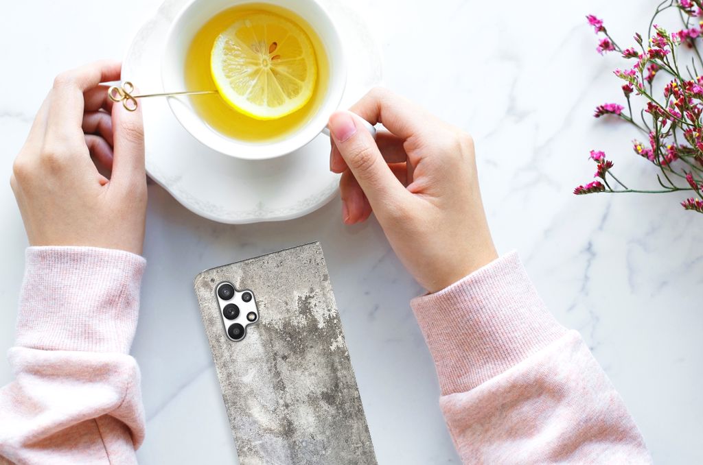 Dit stoere design is perfect voor iedereen die niet van tierlantijntjes houdt. Beton is een stoer materiaal dat tegenwoordig helemaal hip is in industriële interieurs. Maar ook op accessoires en nu dus ook op telefoonhoesjes is het helemaal on trend. Het hoesje heeft een realistische betonlook. Dit ontwerp staat op een Standcase voor de Samsung Galaxy A32 4G | A32 5G Enterprise Editie. Dit populaire smartphonehoesje met het beton-design heeft één vakje voor een pasje of briefgeld en is aan alle zijden bedrukt. Met de standcase zet je je telefoon gemakkelijk neer, zodat je je handen vrij hebt als je bijvoorbeeld een video wilt kijken. De binnenkant van de standcase is van grijs PU-leer. Dat is fijn, omdat je daardoor niet snel vlekken ziet op je hoesje.
