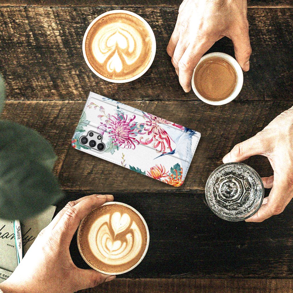 Verspreid over de hele wereld leven 19 soorten ooievaars. De spanwijdte – dat is de afstand van vleugeltip tot vleugeltip – van een volwassen ooievaar kan 2.50 meter bedragen. De gebieden waarin de ooievaar broedt, liggen in heel Europa, het Midden-Oosten, West- en Centraal-Azië en Noordwest-Afrika. Het ideale leefgebied van de ooievaar is een half open tot open landschap met veel afwisseling in grondgebruik en begroeiing. De begroeiing op dit design hoesje, in allerlei verschillende kleuren, zal niet alleen voor de ooievaars fraai zijn. Jij zult er zelf ook heel vrolijk van worden. Het in het oog springende design staat op een Hoesje maken. Deze case beschermt jouw Samsung Galaxy A32 5G aan alle kanten en beschikt over een 1 opbergvakje en een speciale standaard. Het hoesje wordt afgesloten met een magneet aan de binnenzijde. De houder aan de binnenzijde is van TPU. Alle zijden van de stand case worden bedrukt.