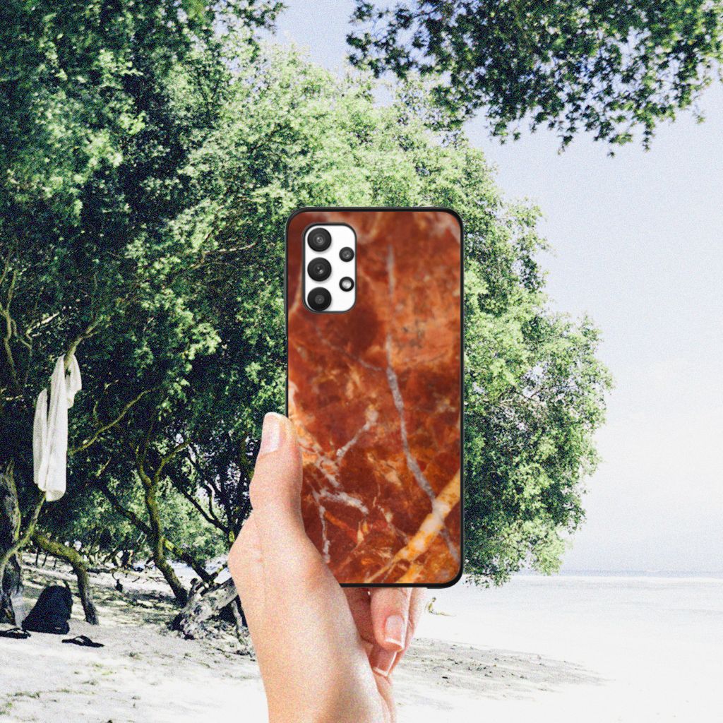 Samsung Galaxy A32 5G Marmeren Print Telefoonhoesje Marmer Zwart - Origineel Cadeau Vader