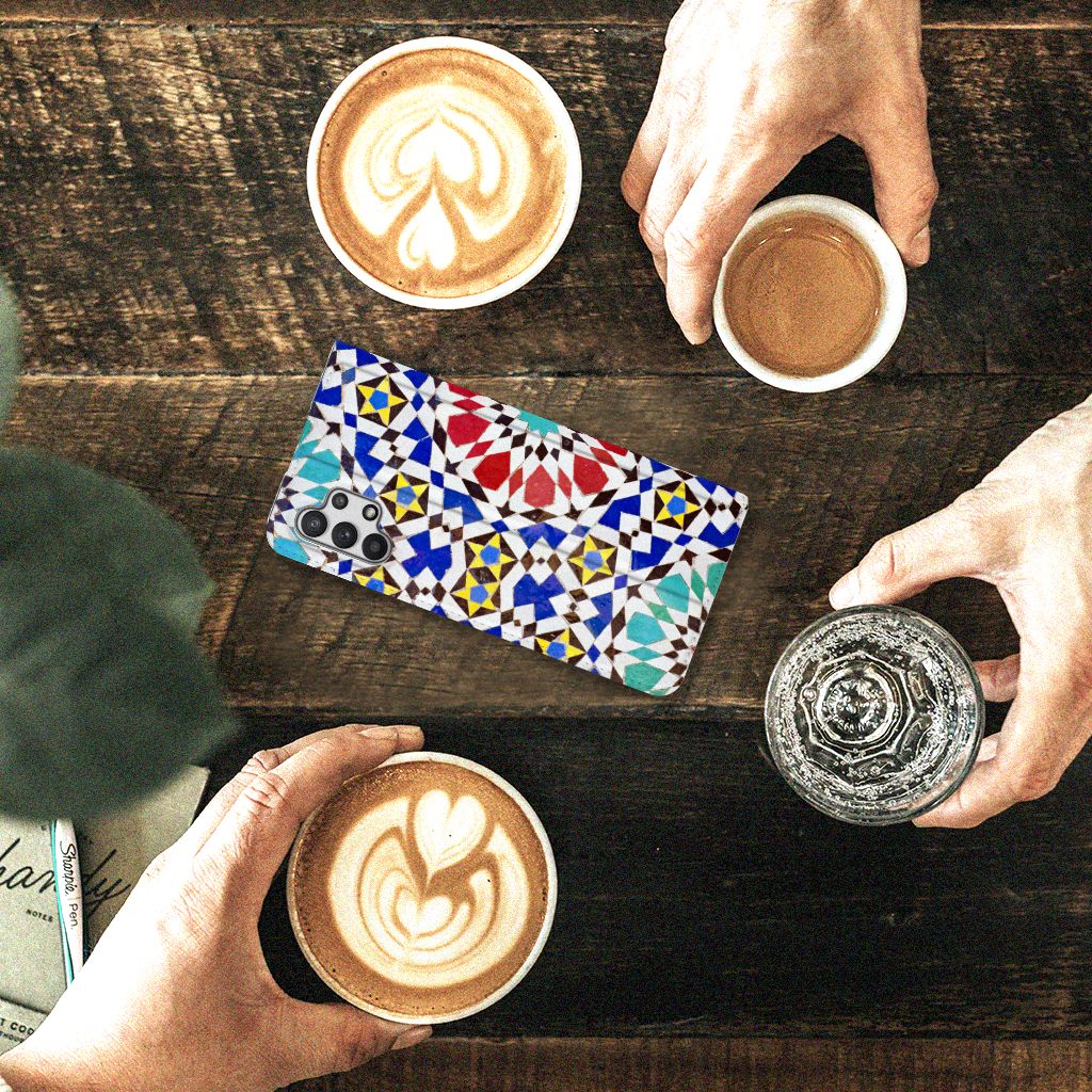 Aan design hoesjes met kunstvormen geen gebrek in onze uitgebreide collectie. Wat dacht je van dit design hoesje met Mozaïek . Dit is een kunstvorm waarbij een grote afbeelding wordt gemaakt uit een groot aantal kleine gekleurde steentjes (tesserae), die in een vloer of wand worden gemetseld. Deze gekleurde steentjes zie je terug op deze stand case met design van mozaïek. Een stand case is een van de veiligste cases die er bestaan. Een Samsung Galaxy A32 5G Standcase met print zorgt voor een volledige bescherming van je smartphone en wordt aan alle zijden bedrukt met mozaïek. Verder is de houder aan de binnenzijde van TPU. De Grieken en Romeinen beheersten de kunst al. Op diverse plaatsen in Europa zijn mozaïeken teruggevonden die tot op de dag van vandaag goed bewaard zijn gebleven. Met een hoesje met mozaïek blijft jouw telefoon in tact. Je pasje en kun je in het vakje aan de binnenzijde stoppen. De case heeft ook een standaard.