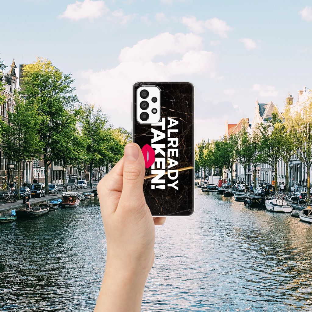 Met deze Samsung Galaxy A33 5G Siliconen hoesje met naam met Already Taken Black tekst maak je duidelijk dat jouw smartphone een kostbaar bezit is, waar je zeer lang over wilt beschikken. Je telefoon neem je waarschijnlijk vaak ter hand, dus dan zal de boodschap als je over dit hoesje beschikt zeker weten overkomen. De TPU case wordt alleen aan de bovenkant bedrukt en is zeer flexibel. De randen van het hoesje blijven transparant. Wil je een eigen tekst op je hoesje zetten? Dit kan ook, met onze Phone Case Designer. Deze unieke ontwerpmodule is ook geschikt om het design uit te breiden met foto’s, effecten en patronen.