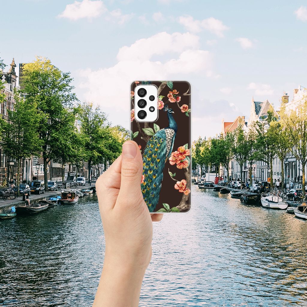 Op deze Samsung Galaxy A33 5G TPU Hoesje kun jij zo trots als een pauw zijn. Met dit geweldige design hoesje met een Pauw met Bloemen erop kun jij je smartphone voor zeer lange tijd beschermen. Deze tpu case is zeer duurzaam en gemaakt van zeer elastisch materiaal. Je bent zeer flexibel met deze TPU case met print van een pauw. Met een tpu case met fleurige bloemen en trotse pauwen wordt jouw telefoon er een stuk mooier op. De onderscheidende case heeft opstaande randen aan de voorzijde en wordt alleen aan de bovenzijde bedrukt. Zie jij liever jouw eigen huisdier op een telefoonhoesje? Dan adviseren we je zelf een hoesje te ontwerpen met onze unieke Phone Case Designer.