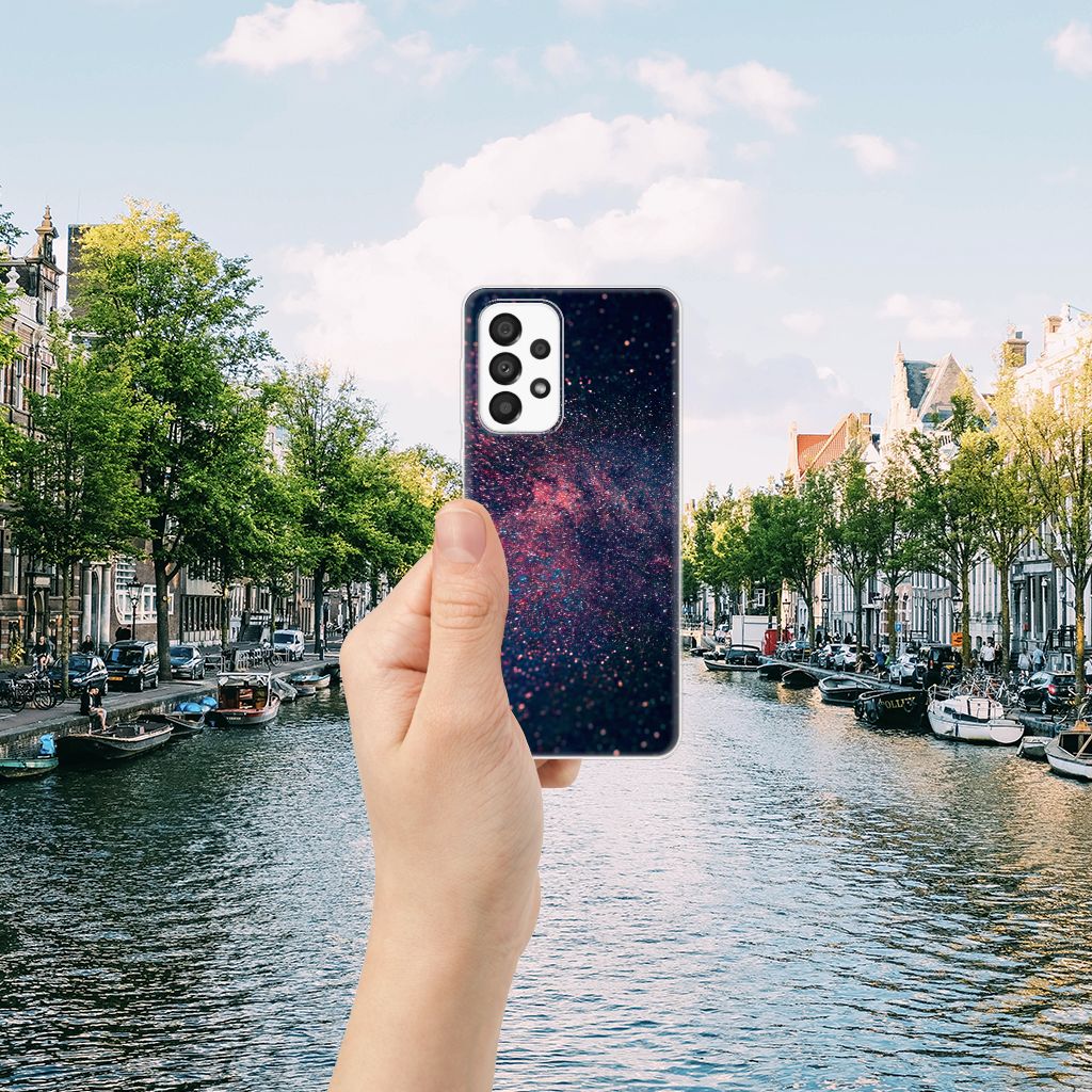 Je waant je in de zevende hemel met dit kunstzinnige, glitterachtige design hoesje met paarse en blauwe kleuren tegen een inktzwarte achtergrond. Het smartphone hoesje heeft ook een wat science fiction achtige allure. Met deze design Stars case zul je zeker opvallen. Als dit je bedoeling is, bestel dat snel dit waanzinnig mooie product voor je Samsung Galaxy A33 5G. Het telefoonhoesje is van alle gemakken voorzien en combineert een hele fraaie uitstraling met maximaal comfort. Bovendien is het gemaakt van zeer stevig en flexibel materiaal. Het unieke design, door B2C Telecom ontworpen, staat op een TPU Hoesje. Dit hoesje wordt alleen aan de bovenkant bedrukt en is zeer flexibel. De randen van het hoesje blijven transparant en worden niet bedrukt. Met dit hoesje past jouw telefoon altijd in je broekzak.