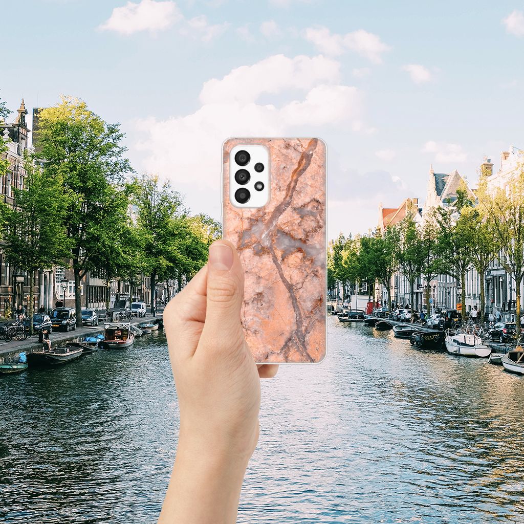 Dit design hoesje met Marmer Oranje is zeer geschikt voor jouw kostbare telefoon. Vanwege zijn prachtige lichtval en vastheid is marmer een zeer gewild bouwmateriaal. Wij kunnen inmiddels concluderen dat dit hoesje met oranje marmer ook zeer gewild is. Beloon jezelf en je telefoon met dit hele mooie Samsung Galaxy A33 5G TPU Siliconen Hoesje. Naast het oranje marmer zijn er de diverse marmersoorten in een ruim kleurenpallet te krijgen. Deze tpu case met marmer in oranje wordt aan de achterzijde bedrukt. De case beschikt over opstaande randen en is gemaakt van onbreekbaar materiaal. De randen van de case in oranje marmer blijven transparant. Wij hebben onze designer veel vrijheid gegeven met het ontwerpen dit mooie hoesje. Het resultaat zie je terug in deze tpu case met oranje marmer, dat een hele goede bescherming is voor jouw smartphone. Des te mooi dat wij voor variatie hebben gekozen door een hoesje met oranje marmer aan de bieden.