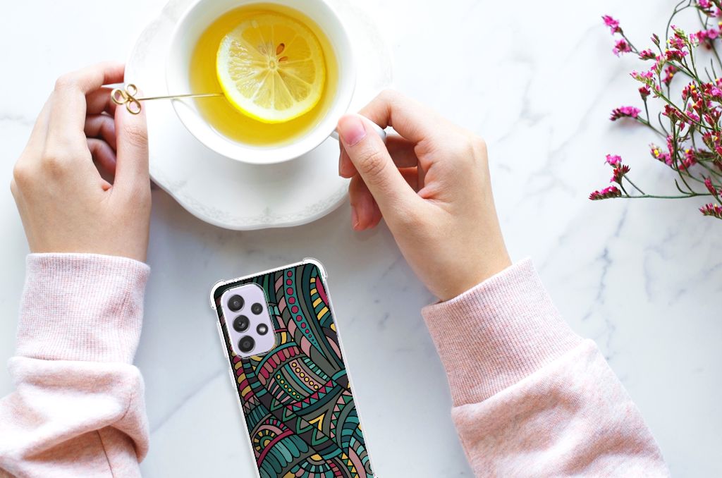 Ben je op zoek naar een uniek telefoonhoesje voor je Samsung Galaxy A33? Dan ben je bij B2C Telecom aan het juiste adres! Speciaal voor jou hebben we dit prachtige Aztec design in onze collectie hoesjes opgenomen. Het design wordt bedrukt op een Doorzichtige Silicone Hoesje en is gemaakt van flexibel rubber. Het hoesje is perfect voor de actieve smartphonegebruiker door de opstaande randen/hoeken. Denk aan mensen die veel sporten, reizen of wandelen en net iets meer zekerheid willen als het op hun geliefde telefoon aankomt. Het design wordt alleen aan de bovenkant van het hoesje bedrukt en de randen blijven transparant. Aan de zijkanten zijn uitsparingen gemaakt waardoor je met gemak alle knoppen en poorten kunt bedienen. Wij adviseren om dit hoesje in combinatie met een screenprotector te gebruiken voor een langere levensduur van je telefoon. Wil je dit hoesje nog iets extra's geven? Voeg dan gratis je naam of een quote toe! Is dit design hoesje toch niet helemaal wat je zocht? Ontwerp dan zelf een hoesje in ons ontwerpprogramma.