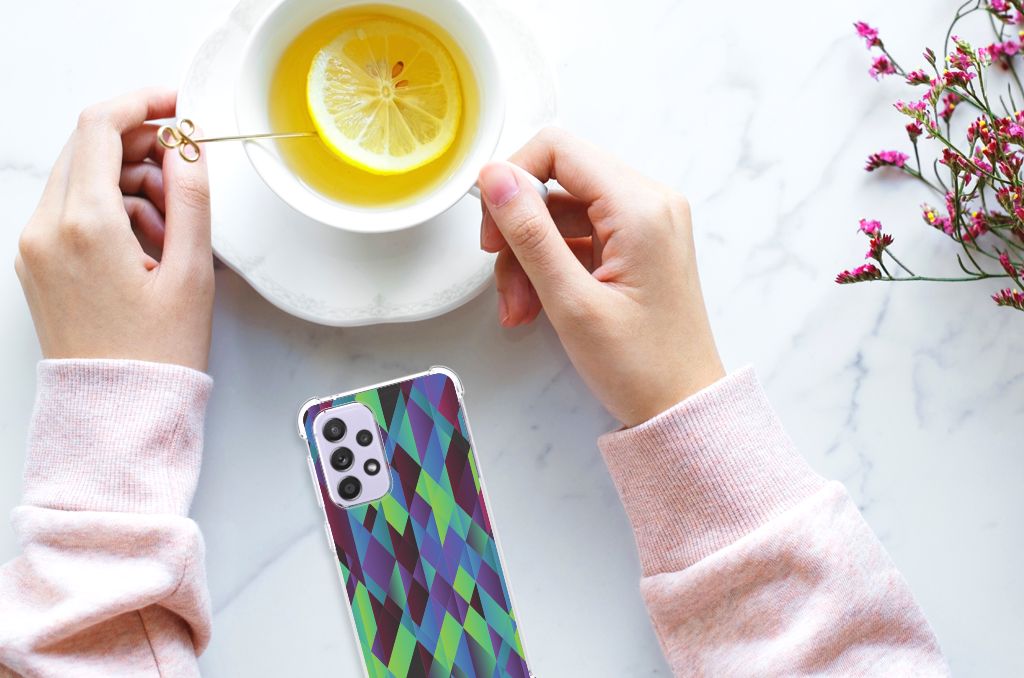 Ben je op zoek naar een uniek telefoonhoesje voor je Samsung Galaxy A33? Dan ben je bij B2C Telecom aan het juiste adres! Speciaal voor jou hebben we dit prachtige Abstract Green Blue design in onze collectie hoesjes opgenomen. Het design wordt bedrukt op een Shockproof Case en is gemaakt van flexibel rubber. Het hoesje is perfect voor de actieve smartphonegebruiker door de opstaande randen/hoeken. Denk aan mensen die veel sporten, reizen of wandelen en net iets meer zekerheid willen als het op hun geliefde telefoon aankomt. Het design wordt alleen aan de bovenkant van het hoesje bedrukt en de randen blijven transparant. Aan de zijkanten zijn uitsparingen gemaakt waardoor je met gemak alle knoppen en poorten kunt bedienen. Wij adviseren om dit hoesje in combinatie met een screenprotector te gebruiken voor een langere levensduur van je telefoon. Wil je dit hoesje nog iets extra's geven? Voeg dan gratis je naam of een quote toe! Is dit design hoesje toch niet helemaal wat je zocht? Ontwerp dan zelf een hoesje in ons ontwerpprogramma.