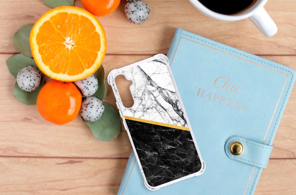 Ben je op zoek naar een uniek telefoonhoesje voor je Samsung Galaxy A34? Dan ben je bij B2C Telecom aan het juiste adres! Speciaal voor jou hebben we dit prachtige Marble White Black design in onze collectie hoesjes opgenomen. Het design wordt bedrukt op een Anti-Shock Hoesje en is gemaakt van flexibel rubber. Het hoesje is perfect voor de actieve smartphonegebruiker door de opstaande randen/hoeken. Denk aan mensen die veel sporten, reizen of wandelen en net iets meer zekerheid willen als het op hun geliefde telefoon aankomt. Het design wordt alleen aan de bovenkant van het hoesje bedrukt en de randen blijven transparant. Aan de zijkanten zijn uitsparingen gemaakt waardoor je met gemak alle knoppen en poorten kunt bedienen. Wij adviseren om dit hoesje in combinatie met een screenprotector te gebruiken voor een langere levensduur van je telefoon. Wil je dit hoesje nog iets extra's geven? Voeg dan gratis je naam of een quote toe! Is dit design hoesje toch niet helemaal wat je zocht? Ontwerp dan zelf een hoesje in ons ontwerpprogramma.