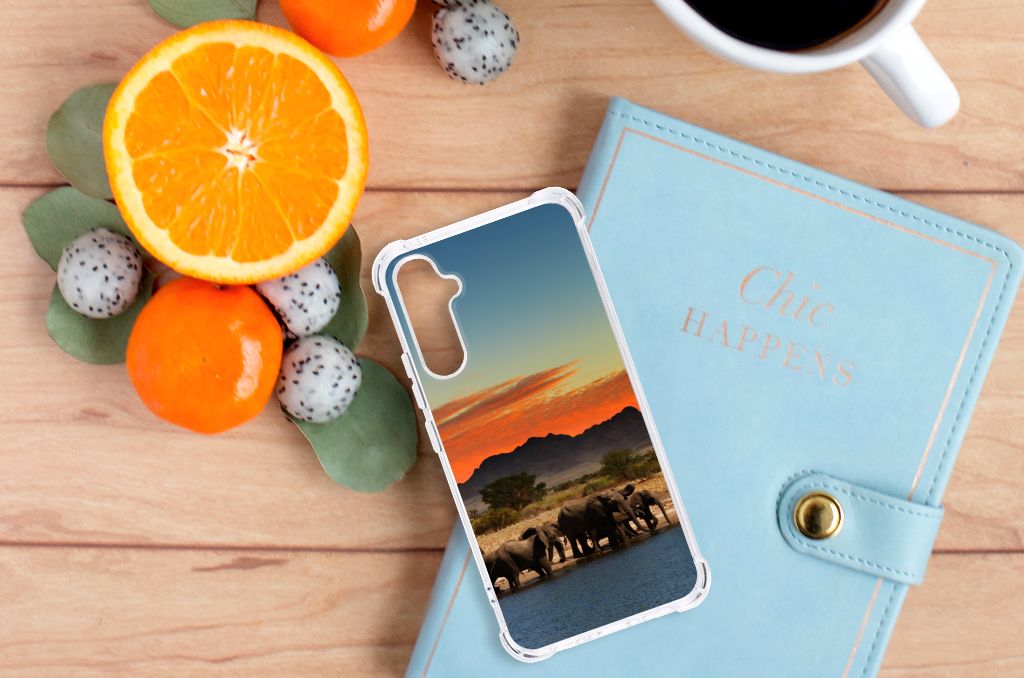 Ben je op zoek naar een uniek telefoonhoesje voor je Samsung Galaxy A34? Dan ben je bij B2C Telecom aan het juiste adres! Speciaal voor jou hebben we dit prachtige Olifanten in onze collectie hoesjes opgenomen. Het design wordt bedrukt op een Case Anti-shock en is gemaakt van flexibel rubber. Het hoesje is perfect voor de actieve smartphonegebruiker door de opstaande randen/hoeken. Denk aan mensen die veel sporten, reizen of wandelen en net iets meer zekerheid willen als het op hun geliefde telefoon aankomt. Het design wordt alleen aan de bovenkant van het hoesje bedrukt en de randen blijven transparant. Aan de zijkanten zijn uitsparingen gemaakt waardoor je met gemak alle knoppen en poorten kunt bedienen. Wij adviseren om dit hoesje in combinatie met een screenprotector te gebruiken voor een langere levensduur van je telefoon. Wil je dit hoesje nog iets extra's geven? Voeg dan gratis je naam of een quote toe! Is dit design hoesje toch niet helemaal wat je zocht? Ontwerp dan zelf een hoesje in ons ontwerpprogramma.