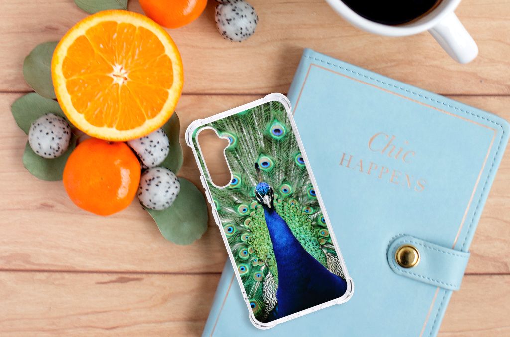 Ben je op zoek naar een uniek telefoonhoesje voor je Samsung Galaxy A34? Dan ben je bij B2C Telecom aan het juiste adres! Speciaal voor jou hebben we dit prachtige Pauw in onze collectie hoesjes opgenomen. Het design wordt bedrukt op een Case Anti-shock en is gemaakt van flexibel rubber. Het hoesje is perfect voor de actieve smartphonegebruiker door de opstaande randen/hoeken. Denk aan mensen die veel sporten, reizen of wandelen en net iets meer zekerheid willen als het op hun geliefde telefoon aankomt. Het design wordt alleen aan de bovenkant van het hoesje bedrukt en de randen blijven transparant. Aan de zijkanten zijn uitsparingen gemaakt waardoor je met gemak alle knoppen en poorten kunt bedienen. Wij adviseren om dit hoesje in combinatie met een screenprotector te gebruiken voor een langere levensduur van je telefoon. Wil je dit hoesje nog iets extra's geven? Voeg dan gratis je naam of een quote toe! Is dit design hoesje toch niet helemaal wat je zocht? Ontwerp dan zelf een hoesje in ons ontwerpprogramma.