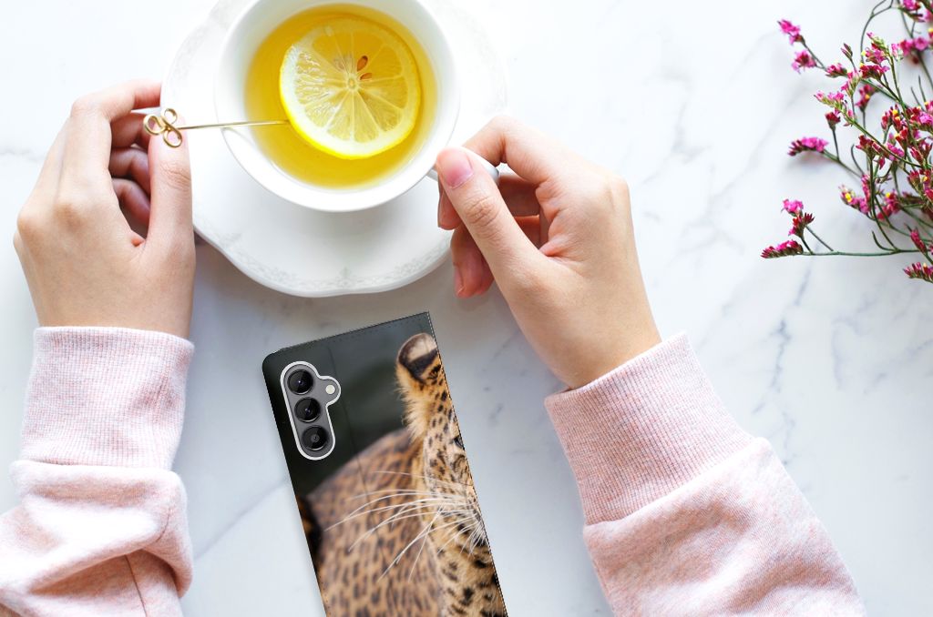 Het luipaard wordt ook wel een panter genoemd en is een sluwe kat. De bruingele vacht met een patroon van rozetachtige vlekken geeft een goede schutkleur. Dit zie je ook op een fraaie manier afgebeeld op dit super stoere hoesje. Mensen die indruk willen maken kopen deze stand case met design van het luipaard. Een Samsung Galaxy A34 Hoesje maken is van alle markten thuis. Het is praktisch – vanwege onder meer het opbergvakje en de magnetische sluiting aan de binnenzijde – maar beschermt jouw smartphone tevens beter dan welke case ook. Het luipaard is sterk en behendig en misschien typeert jou dat ook wel. Dan past dit hoesje met luipaard uitstekend bij jou. De houder van TPU aan de binnenzijde is net zo sterk als het luipaard. Jouw telefoon is perfect beschermd. De case heeft tevens een standaard.
