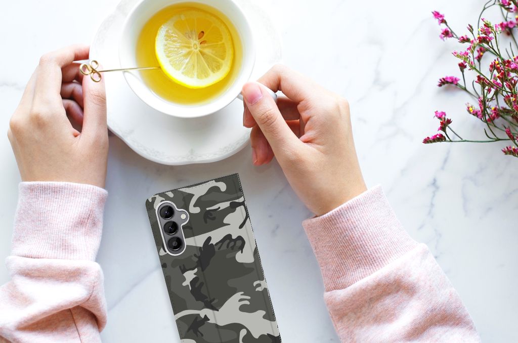 Heb je veel respect voor het leger, dan zal dit telefoonhoesje je zeker bevallen. De Samsung Galaxy A34 Hoesje met Magneet beschikt namelijk over een Army Light print. Camouflage kleding wordt vaak gedragen door mensen die zich graag willen mengen in of met hun omgeving. Dit donkere camouflage hoesje is er dan ook voornamelijk in kleuren die in de natuur voorkomen, zodat je één wordt met je achtergrond. Het design staat op een stand case. Deze stand case beschermt jouw telefoon aan alle kanten en beschikt over een 1 opbergvakje en een speciale standaard. Het donkere hoesje wordt afgesloten met een magneet aan de binnenzijde. De houder aan de binnenzijde is van TPU. Alle zijden van het hoesje worden bedrukt. Beschermt het leger volk en vaderland, dit hoesje in donkere camouflage kleuren zal jouw telefoon onder alle omstandigheden schadevrij houden. Met een leger hoesje in dit soort kleuren zal je niet zo snel opvallen, maar waarschijnlijk ben je daar ook niet naar op zoek. Wel is het een hele stoere stand case.