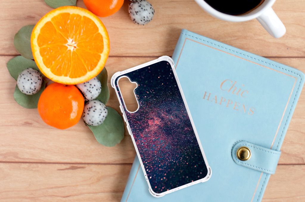 Ben je op zoek naar een uniek telefoonhoesje voor je Samsung Galaxy A34? Dan ben je bij B2C Telecom aan het juiste adres! Speciaal voor jou hebben we dit prachtige Stars design in onze collectie hoesjes opgenomen. Het design wordt bedrukt op een Shockproof Case en is gemaakt van flexibel rubber. Het hoesje is perfect voor de actieve smartphonegebruiker door de opstaande randen/hoeken. Denk aan mensen die veel sporten, reizen of wandelen en net iets meer zekerheid willen als het op hun geliefde telefoon aankomt. Het design wordt alleen aan de bovenkant van het hoesje bedrukt en de randen blijven transparant. Aan de zijkanten zijn uitsparingen gemaakt waardoor je met gemak alle knoppen en poorten kunt bedienen. Wij adviseren om dit hoesje in combinatie met een screenprotector te gebruiken voor een langere levensduur van je telefoon. Wil je dit hoesje nog iets extra's geven? Voeg dan gratis je naam of een quote toe! Is dit design hoesje toch niet helemaal wat je zocht? Ontwerp dan zelf een hoesje in ons ontwerpprogramma.