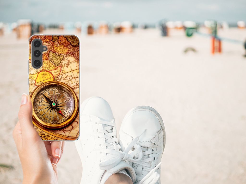 Met deze Samsung Galaxy A34 Siliconen Back Cover met opdruk van een Kompas kun jij veilig elke richting op die je wilt, zonder dat je smartphone schade oploopt. Erg handig. Een kompas werkt overigens met magnetisme. Dat betekent dat een kompas af gaat wijken als die te dicht in de buurt van metaal of een andere magnetische bron komt. Deze tpu case met kompas heeft geen magneet omdat alleen de achterkant en zijkanten maximaal worden beschermd. Onze tpu cases met het beeld van een kompas bieden zeer goede bescherming en zijn heel praktisch, wat blijkt uit onder meer uit de flexibiliteit. Het kompas komt op de bovenkant van de case te staan, de zijkanten blijven transparant. Op deze tpu case kun je trouwens ook in no time zelf foto’s en teksten zetten. Ontwerp bijvoorbeeld eens een hoesje met je eigen vakantiefoto’s.