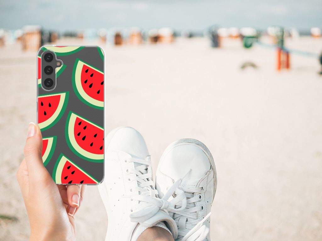 Watermeloenen zijn uitstekende dorstlessers, misschien dat je daarom juist in de zomermaanden extra enthousiast raakt van dit design hoesje Watermelons. Jij blijft gezond als je zo nu en dan een watermeloen neemt, jouw smartphone blijft in tact als je er deze Samsung Galaxy A34 Siliconen Case omheen doet. Deze tpu case wordt alleen aan de bovenkant bedrukt met watermeloenen is zeer flexibel. De randen van het hoesje blijven transparant. Je kunt ook kiezen voor andere soorten fruit op je hoesje. Kijk maar eens naar onze andere design hoesjes op onze website.
