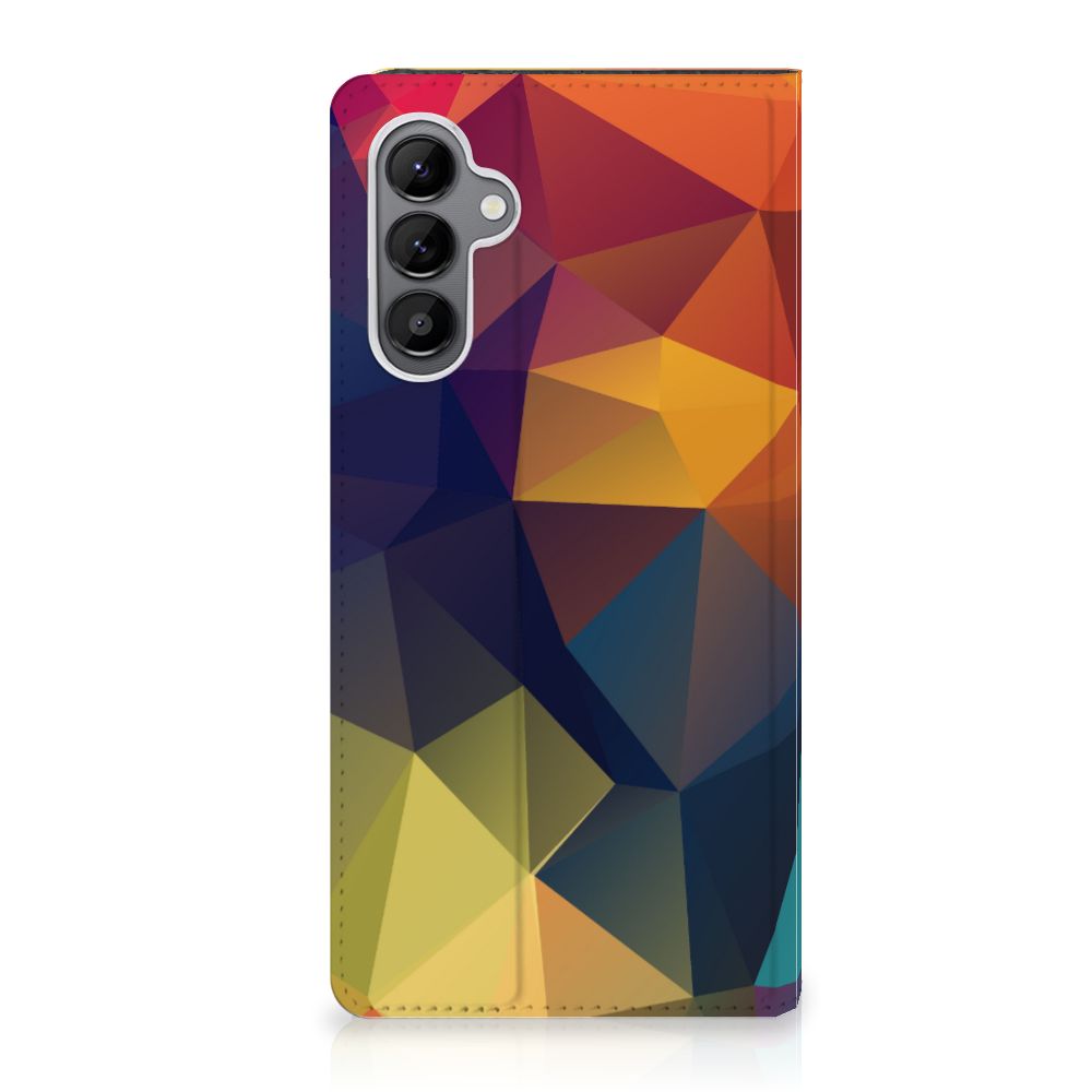 Veelkleurige driehoeken die samen eindeloze asymmetrische patronen lijken te vormen. Het is het abstracte schouwspel dat op dit fraaie hoesje voor je Samsung Galaxy A34 direct de aandacht trekt noemen we voor het gemak trekt noemen we voor het gemak Polygon Color. De een ziet er een berglandschap in, de ander piramides. Wat zie jij erin? Zeker is in elk geval dat de aanblik van dit fascinerende ontwerp je niet snel gaat vervelen. Het kleurige spel van lijnen en vlakken blijft eindeloos boeien en geeft jouw Stand Case een hippe en kunstzinnige uitstraling. De kracht die het lijnenspel uitstraalt, komt ook terug in het hoesje zelf. De solide hoes van PU-leer beschikt ook over een 1 pashouder en een speciale standaard. Het hoesje wordt afgesloten met een magneet aan de binnenzijde. De houder aan de binnenzijde is van TPU. Alle zijden worden bedrukt.