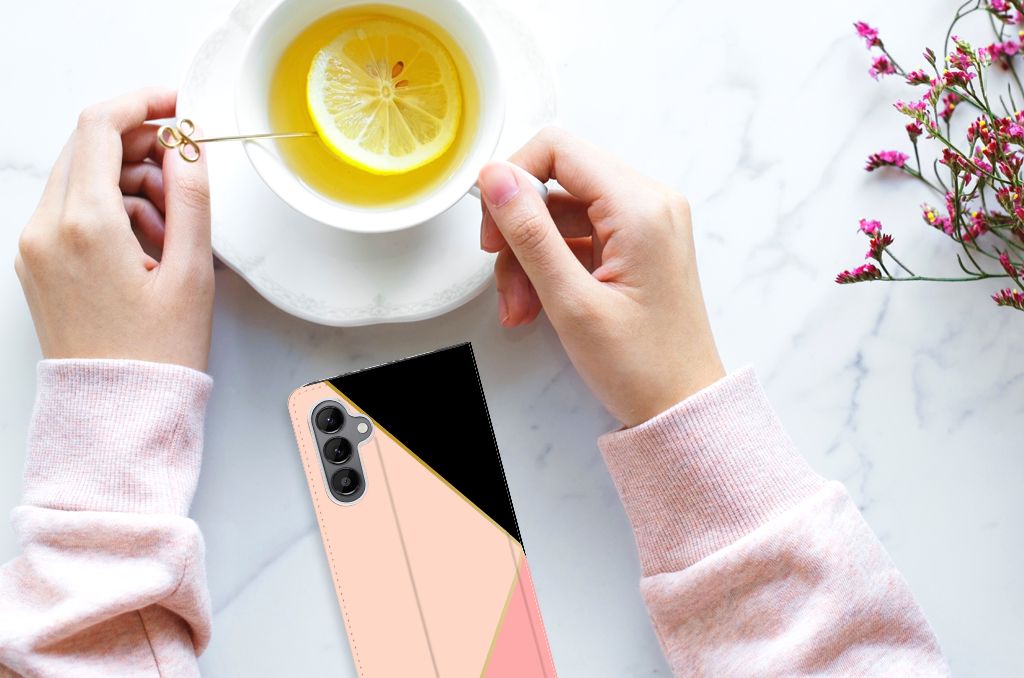 Samsung Galaxy A34 Print Stand Case Zwart Roze Vormen