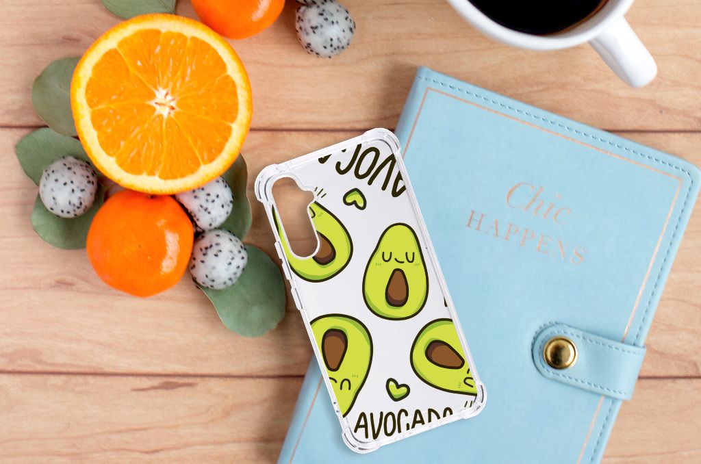 Ben je op zoek naar een uniek telefoonhoesje voor je Samsung Galaxy A34? Dan ben je bij B2C Telecom aan het juiste adres! Speciaal voor jou hebben we dit prachtige Avocado Singing design in onze collectie hoesjes opgenomen. Het design wordt bedrukt op een Stevig Bumper Hoesje en is gemaakt van flexibel rubber. Het hoesje is perfect voor de actieve smartphonegebruiker door de opstaande randen/hoeken. Denk aan mensen die veel sporten, reizen of wandelen en net iets meer zekerheid willen als het op hun geliefde telefoon aankomt. Het design wordt alleen aan de bovenkant van het hoesje bedrukt en de randen blijven transparant. Aan de zijkanten zijn uitsparingen gemaakt waardoor je met gemak alle knoppen en poorten kunt bedienen. Wij adviseren om dit hoesje in combinatie met een screenprotector te gebruiken voor een langere levensduur van je telefoon. Wil je dit hoesje nog iets extra's geven? Voeg dan gratis je naam of een quote toe! Is dit design hoesje toch niet helemaal wat je zocht? Ontwerp dan zelf een hoesje in ons ontwerpprogramma.