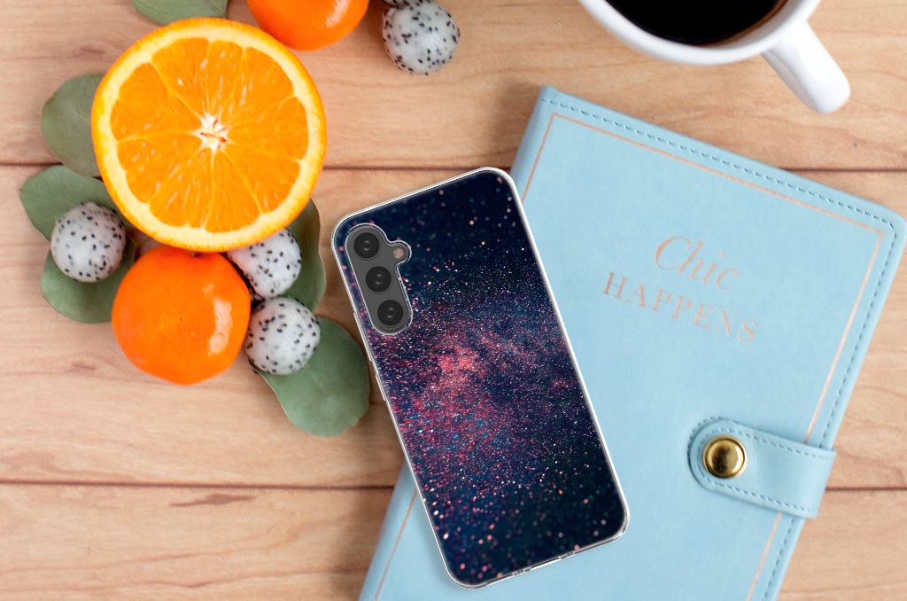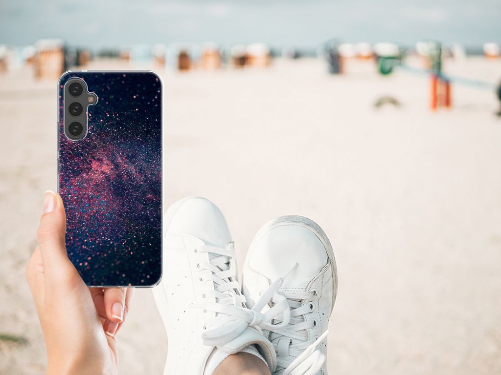Je waant je in de zevende hemel met dit kunstzinnige, glitterachtige design hoesje met paarse en blauwe kleuren tegen een inktzwarte achtergrond. Het smartphone hoesje heeft ook een wat science fiction achtige allure. Met deze design Stars case zul je zeker opvallen. Als dit je bedoeling is, bestel dat snel dit waanzinnig mooie product voor je Samsung Galaxy A34. Het telefoonhoesje is van alle gemakken voorzien en combineert een hele fraaie uitstraling met maximaal comfort. Bovendien is het gemaakt van zeer stevig en flexibel materiaal. Het unieke design, door B2C Telecom ontworpen, staat op een TPU Hoesje. Dit hoesje wordt alleen aan de bovenkant bedrukt en is zeer flexibel. De randen van het hoesje blijven transparant en worden niet bedrukt. Met dit hoesje past jouw telefoon altijd in je broekzak.