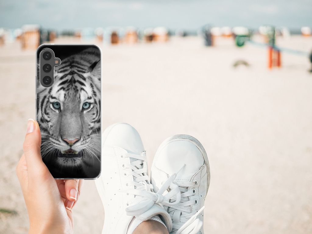 Omdat de Witte Tijger zo bijzonder is, zijn wij bereid deze voor zeer lage kosten op een tpu case te zetten. Dit kunnen we zo goedkoop doen omdat we het drukwerk in eigen beheer doen. Witte tijgers leefden lange tijd in de bossen van India, Bangladesh, Nepal, Bhutan en China en kunnen wel 257 kilo wegen. Dit zwaargewicht kunnen we bedrukken op verschillende soorten hoesjes, zoals deze tpu cases. Deze Samsung Galaxy A34 TPU Hoesje kan exclusief in het bezit van jou komen. Zeker als je er zelf nog unieke teksten en/of beelden aan toevoegt. Het tpu hoesje is zeer flexibel en wordt alleen aan de bovenzijde bedrukt. De randen van dit flexibele hoesje blijven doorzichtig. Tegenwoordig zijn witte tijgers alleen in gevangenschap te bewonderen. Jij zorgt voor een goede bescherming van je smartphone met dit design hoesje met witte tijger.